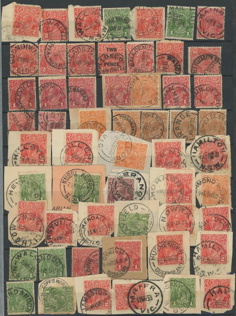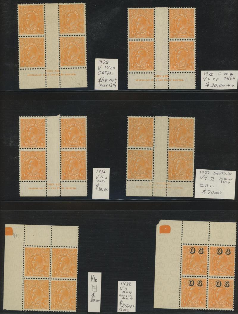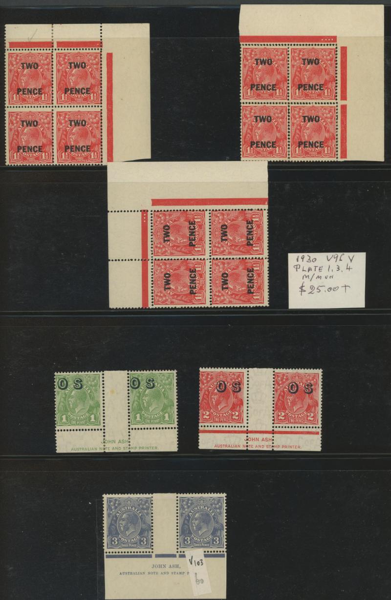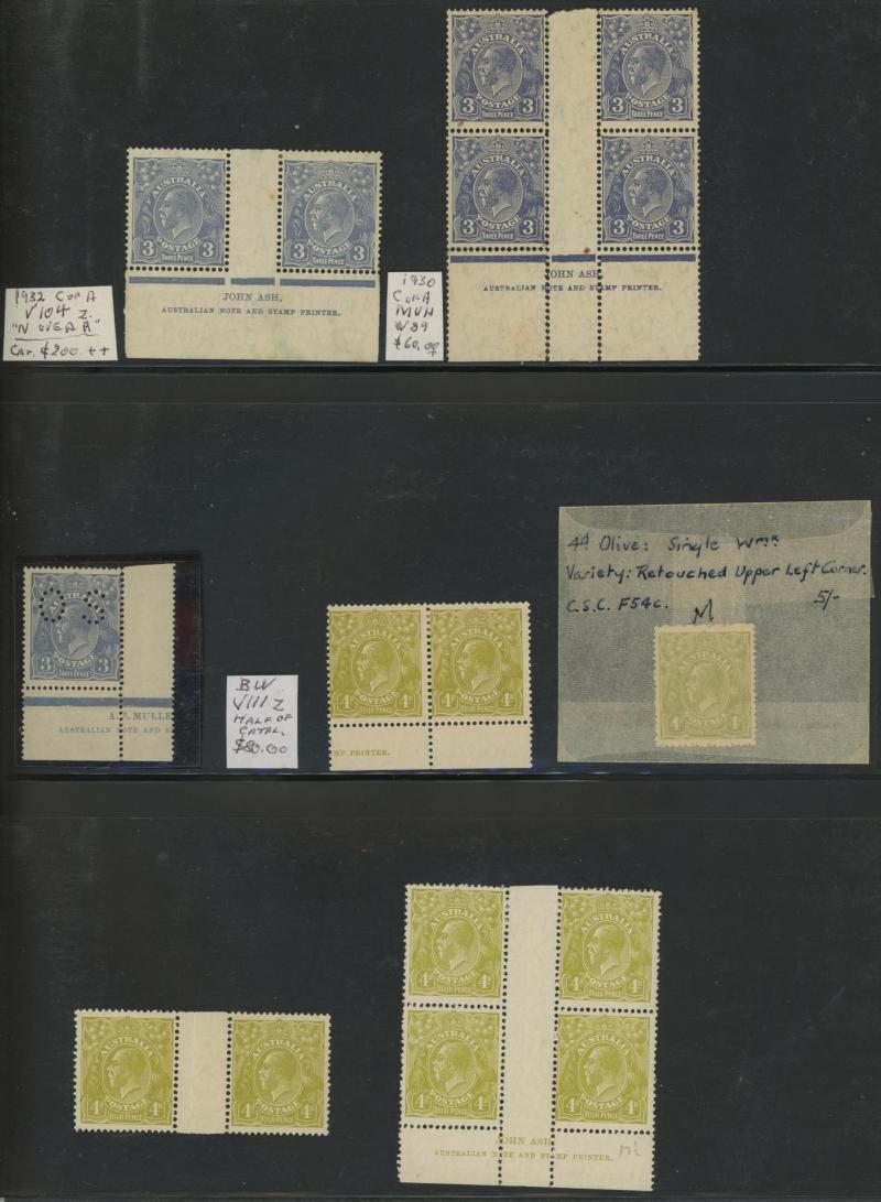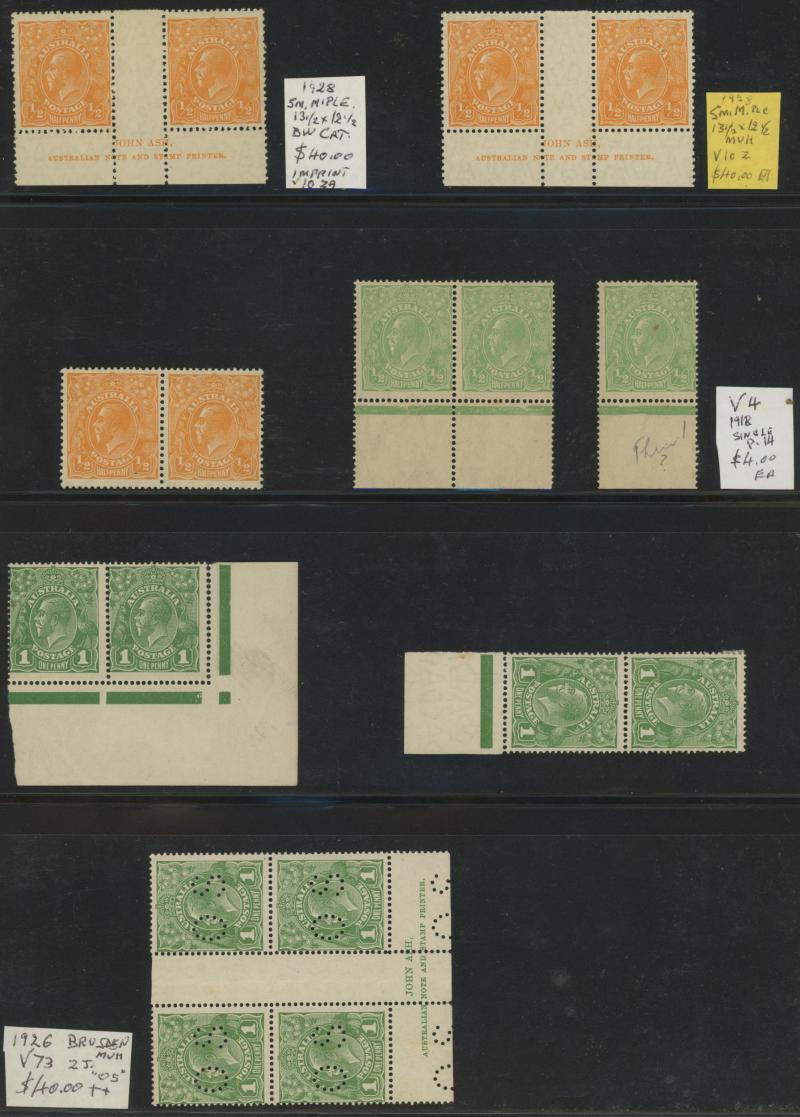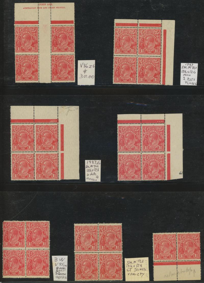 1356 og/nh imageONE PENNY GREEN: Accumulation with many plated varieties in multiples including Single Wmk blocks of 4 x20+, block of 9 with Dot before '1' and cross-gutter block of 24 with 'Secret Mark' & Pearl Flaw, etc, Large Multiple Wmk blocks of 4 x8, blocks of 6 & block of 8, No Wmk blocks of 4 x18, blocks of 6 x3, block of 8 & blocks of 12 x2, Small Multiple Wmk Perf 14 blocks of 4 x60+ including one with Corner Dot & Run 'N' (scarce unretouched) and a number with Wattle Line & Neck Flaw including retouches, and so on including CofA Wmk 'OS' Overprints noted a block of 20 with Notched Upper Left Corner, White Scratch Right of Crown & Deformed Shading over 'E' of 'POSTAGE', also Watermark Inverted, punctured 'OS', lots of imprint blocks, and many, many more, condition a little variable but generally fine to very fine, enormous catalogue value. Weighs 3kg. Ex Graeme Stephensen. (many 100s) (Image1) (Image2) (Image3) (Image4) (Image5) (Image6) (Image7) (Image8) (Image9) (Image10) (Image11) (Image12) (Image13) (Image14) (Image15) (Image16) (Image17) (Image18) (Image19) (Image20) (Image21) (Image22) (Image23) (Image24) (Image25) (Image26) (Image27) (Image28)