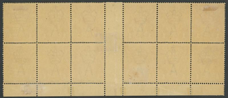 1366 og/nh image1d scarlet-red Smooth Paper Comb Perf SG 21c Plate 2 No Monogram left & right corner strips of 3 ACSC 71(2)z & za in two separated marginal strips of 6 (originally an inter-panneau strip of 12), the left-hand units well-centred, rough 'fluffy' perfs, five units with hinge remainders, the others - including the left No Monogram strip - are unmounted, Cat $7650+ for the two strips mounted plus 3 mounted & 3 unmounted singles. Ex Julian Sterling - sold in 2014 for $4270 - and Gerald Fon. (Image1) (Image2)