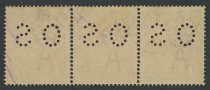 1422 F image1d carmine-rose G30 Smooth Paper Comb Perf Plate 1 Die I / Die II / Die II horizontal strip of 3 ACSC 71(1)ic (SG O39/O39h), three light Bunbury (WA) cds cancels of '9.OCT.15' well clear of the Die II spurs, Cat $800+ for a Die I / Die II pair and a Die II single (£160+ for singles). PCNZA Certificate (2025). Ex David Adams. (Image1) (Image2) (Image3)