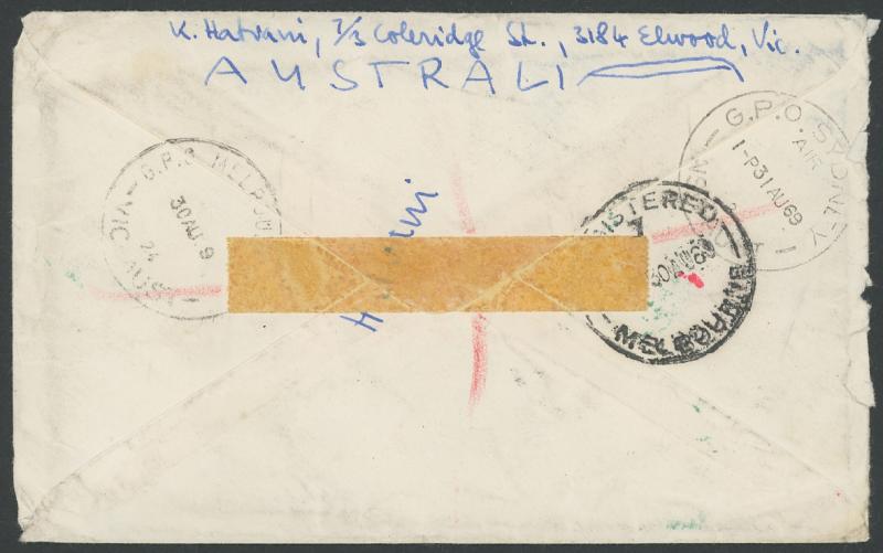 1969 (Aug 30) registered double-rate airmail cover to Czechoslovakia under Russian Occupation, with scarce franking of Captain Cook