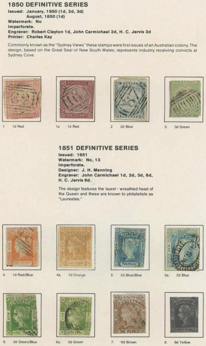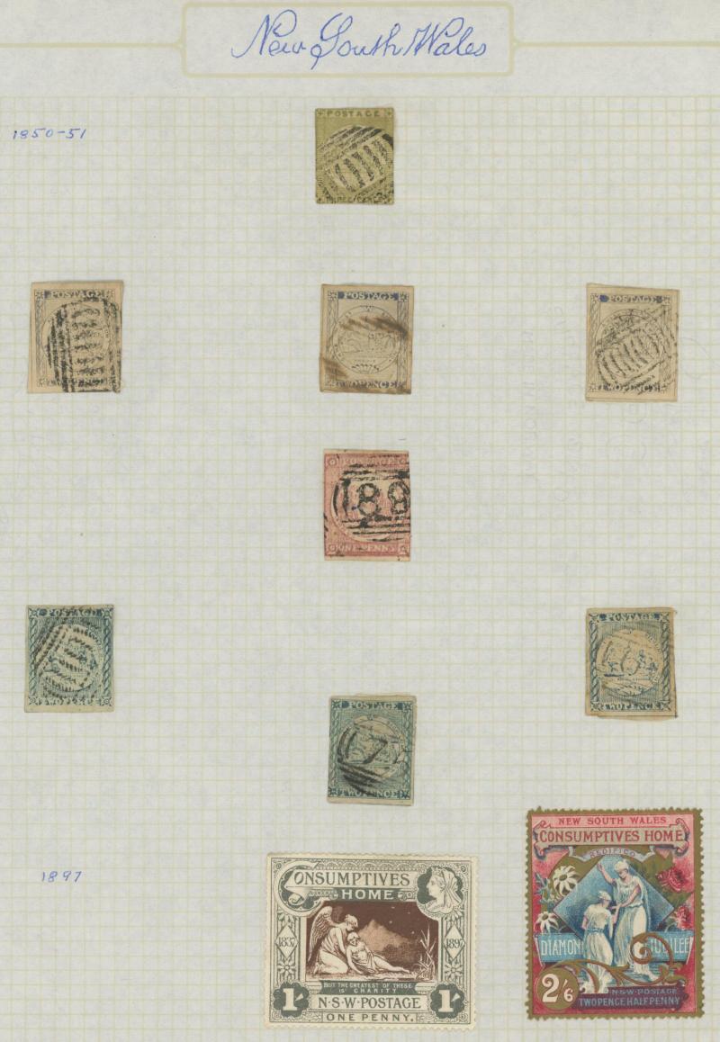 Valuable collection from a German source on large pages with NSW including Sydney Views 1d Plate II, 2d Plate I x2, 2d Plate II and