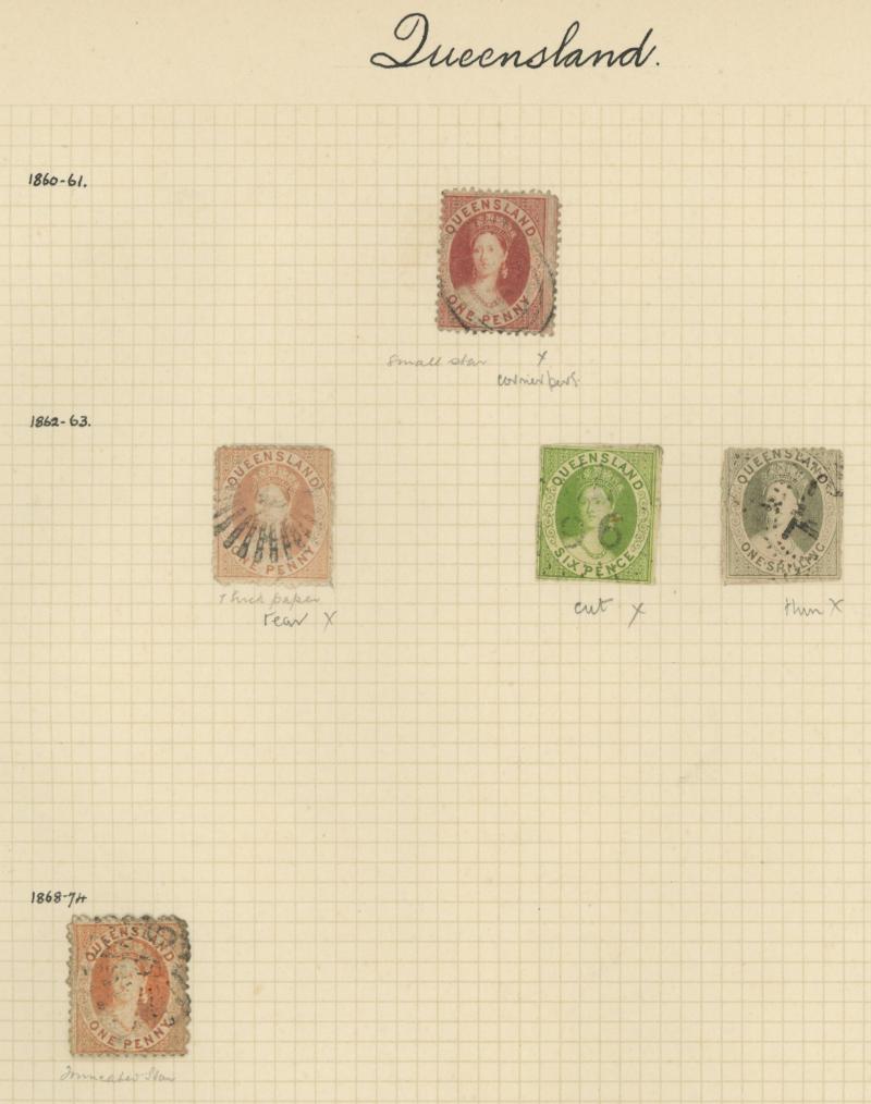 imperf, (6d) 'REGISTERED', 5/- Coin (faults) & Map postally used; Queensland Chalons; Tasmania 4d Courier cut-square, imperf Chalons to 1/; Victoria 3d Half-Length, Queen-on-Throne 6d x6, condition variable. Inspection will reward.