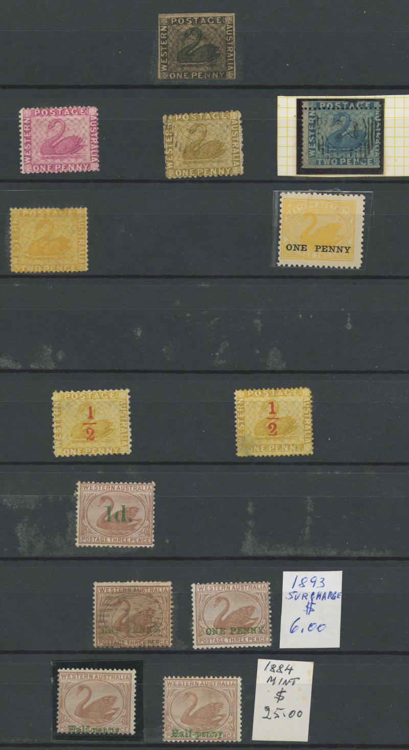 'REGISTERED', Emblems Imperf Star Wmk 1d massive pair & No Wmk 2d strip of 4; Western Australia Penny Black x2, Litho 4d & 1/- x2, Hillman 6d; etc, and lot of later issues, also Australia with Kangaroos to 5/- CTO plus 'SPECIMEN' Overprints Type B