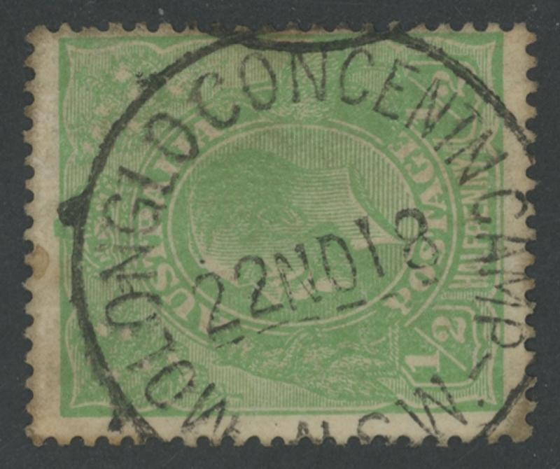 Molonglo Concentration Camp: 'MOLONGLO CONCENTN CAMP/22NO18/NSW' cds superb almost complete strike on KGV ½d green (minor aging).
