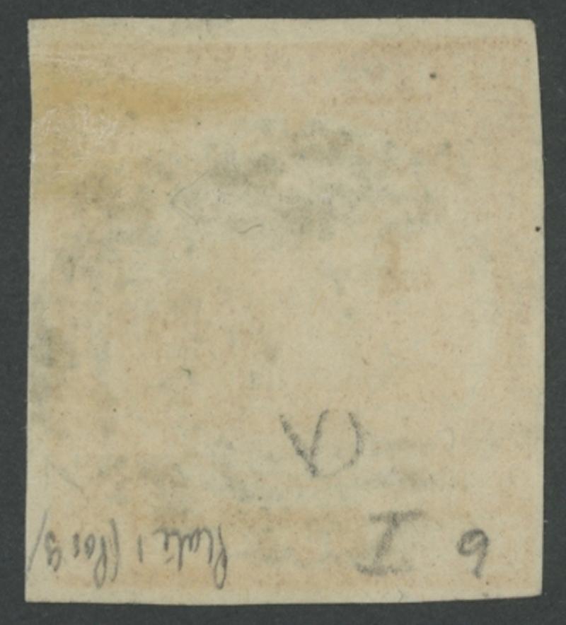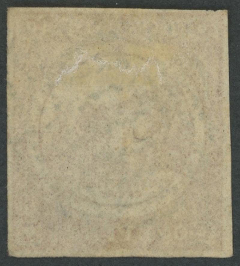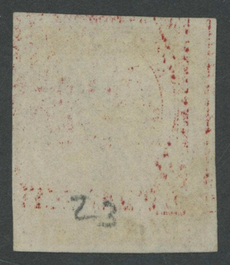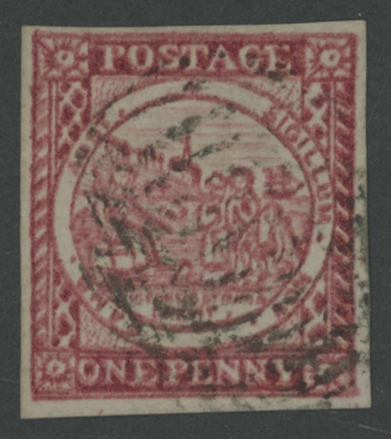 1850-51 Sydney Views 1d crimson-lake Plate II (Clouds) Hard Greyish or Bluish Paper SG 9, margins close to large, light Sydney bars