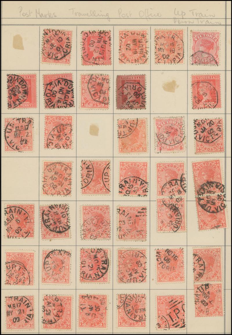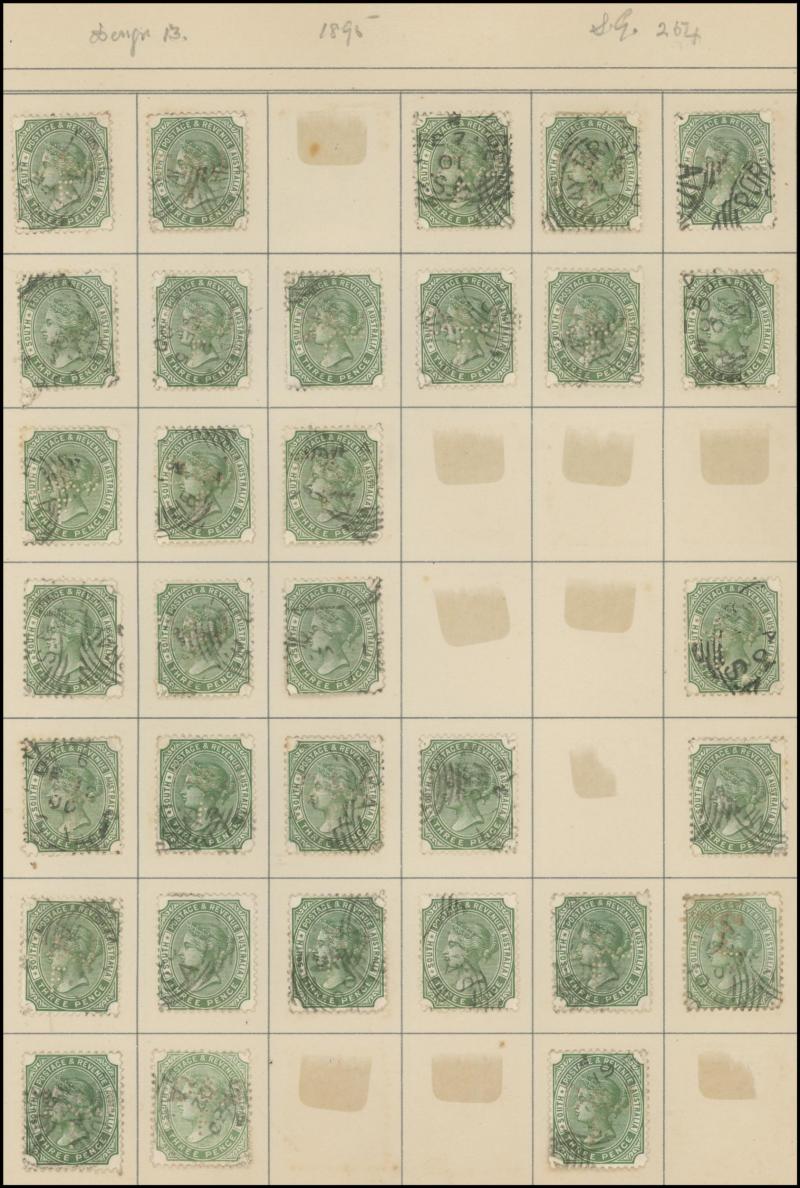 plenty of postmark interest especially Victorian Barred Numerals, early unframed datestamps & TPO cancels, noted 9d red block of with multiple strikes of BN '474', plenty of commercial perfins, also a few Revenues, Railway Stamps, Cinderellas, etc,