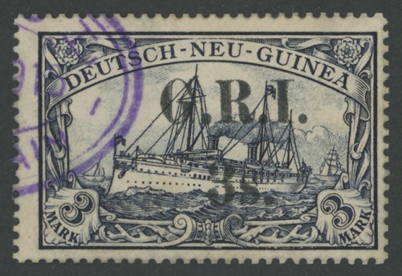 1914-15 6mm Spacing on German New Guinea '3d.' on 25pf black & red/yellow SG 7 (Michel 7I; Scott 7) [Setting 7 Pos 1],