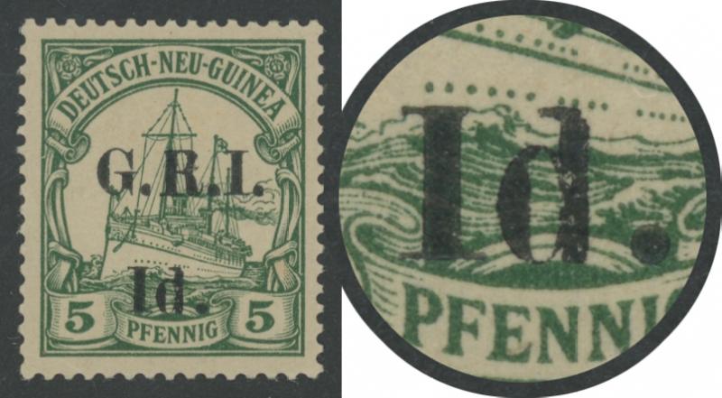 Rabaul triple-ring oval datestamp in violet, Cat £200 (€180; US$220). Robert Gibbs states that Setting 4 "appears to be rare", and that stamps from this Setting are worth ten-times normal. (Image1) (Image2)