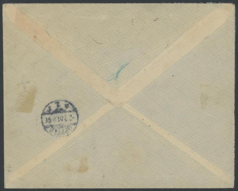 tears and a vertical fold clear of the adhesives & markings. The rate was 20pf up to 20g UPU letter; apparently the item weighed over 20g so the Mitläufer was added. (Image1) (Image2)