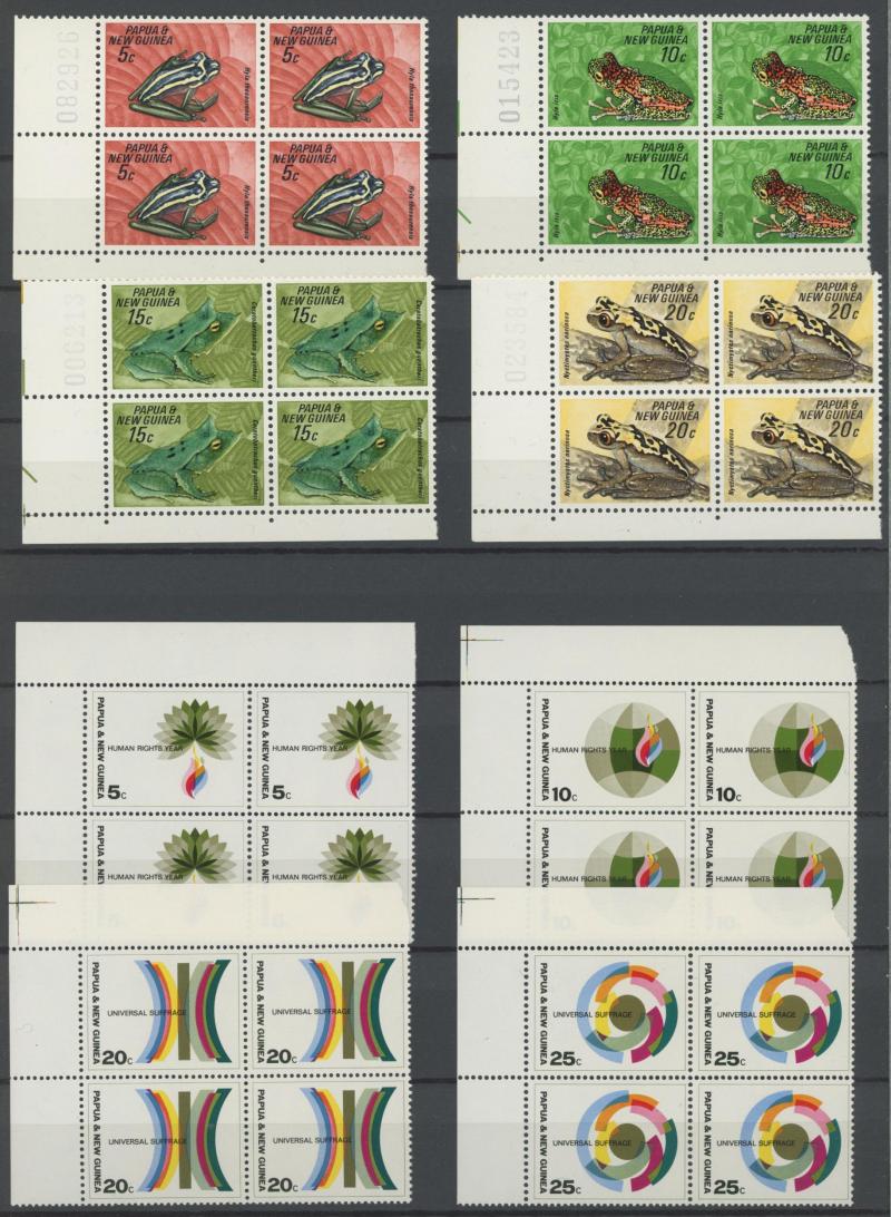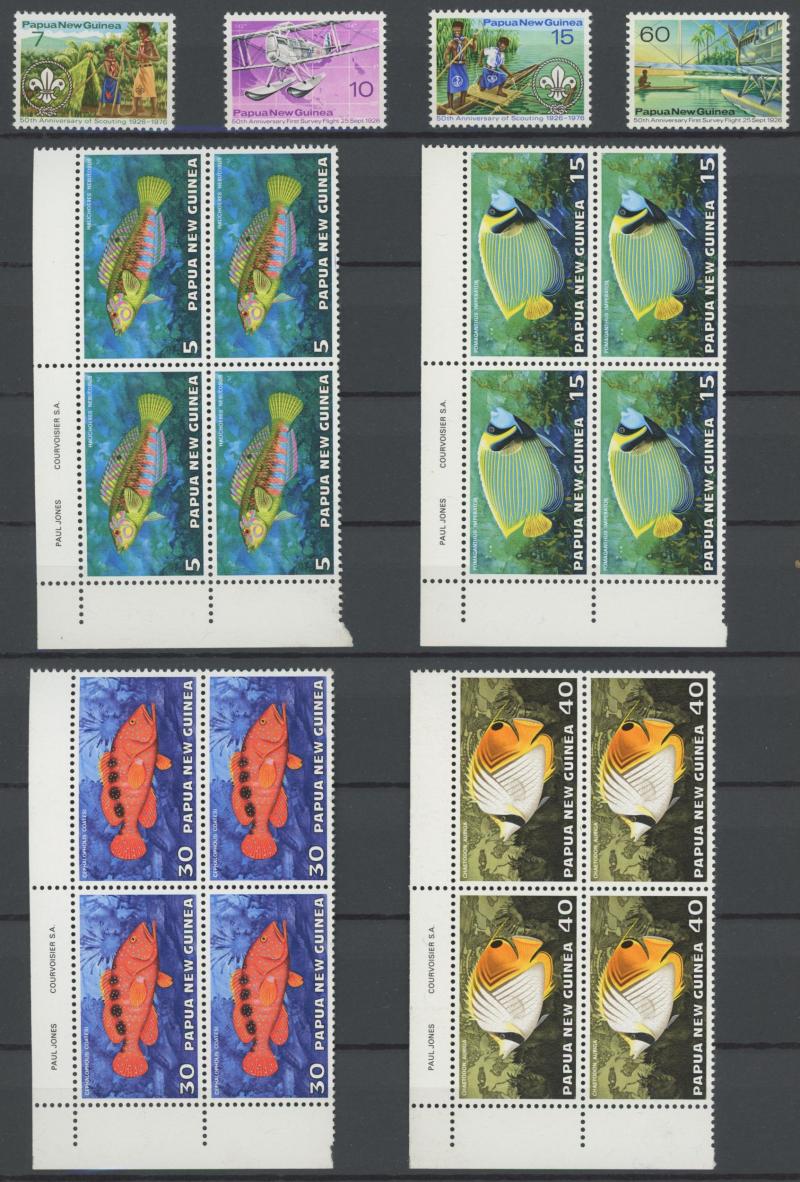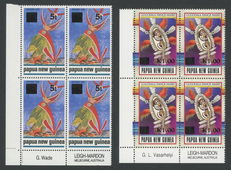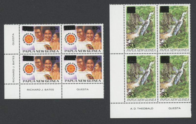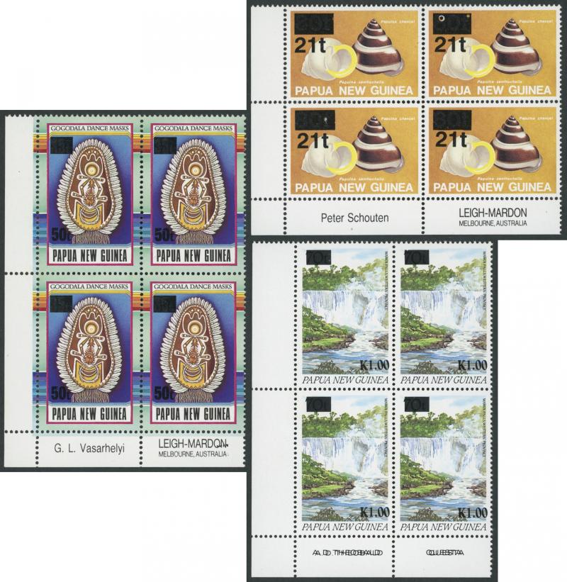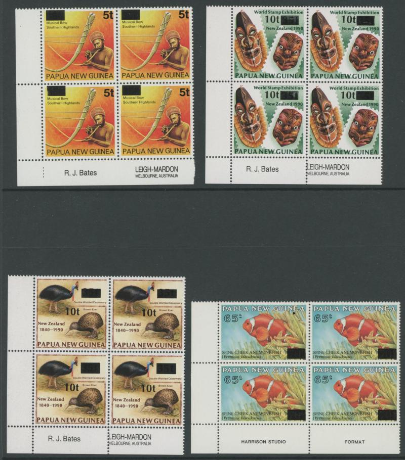 2170 nh image1994 Emergency Surcharges set SG 730-740 marginal blocks of 4 from the lower-left corners of the sheets with Designer's Name & Printer Imprints (imprint Doubly Printed on the 'K1.00' Surcharge on 70t Waterfall), unmounted, Cat £800+ for singles. (11 blocks) (Image1) (Image2) (Image3) (Image4) (Image5) (Image6) (Image7) (Image8)