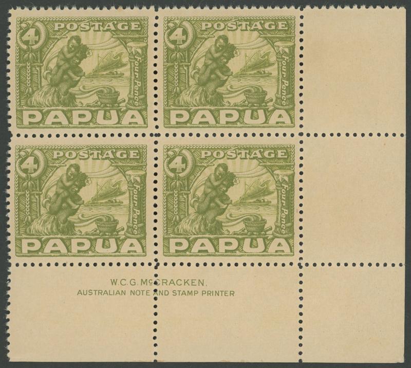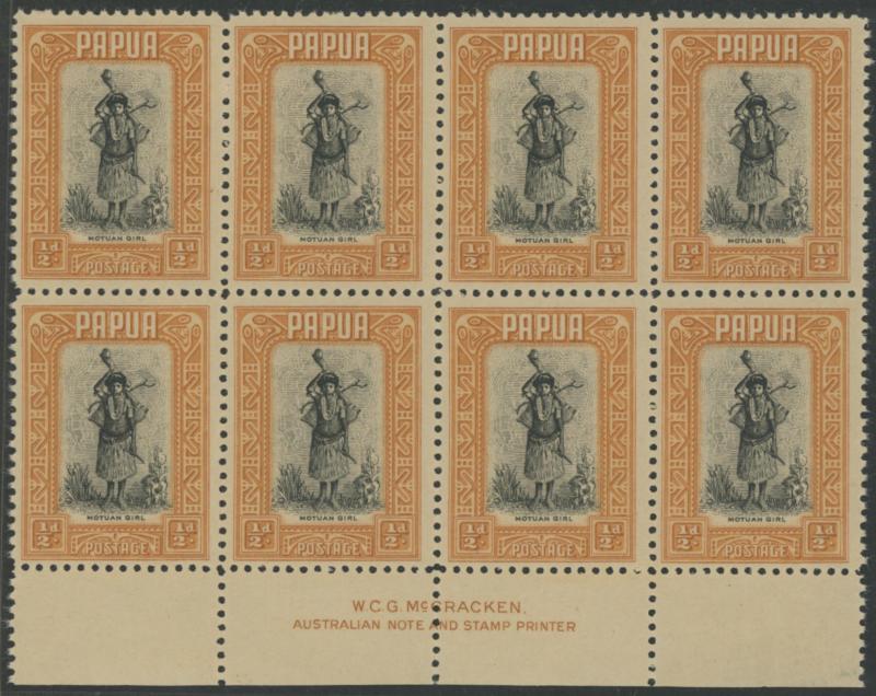 2160 nh image1932-40 Pictorials WCG McCracken Imprint blocks ½d black & buff SG 130a block of 8 (4x2) very fine, 1d black & green SG 131 block of 12 (6x2; two units & imprint affected by a vertical crease), and 4d olive-green block of 4, plus ½d black & orange SG 130 John Ash Imprint block of 10 (minor blemishes) for comparison. The McCracken Printing ½d is a distinctive shade. The 2d & 4d are subtly different and can be identified by experts but the presence of the imprints makes identification conclusive. (4 blocks) (Image1) (Image2) (Image3) (Image4) (Image5) (Image6) (Image7) (Image8)