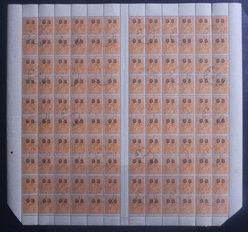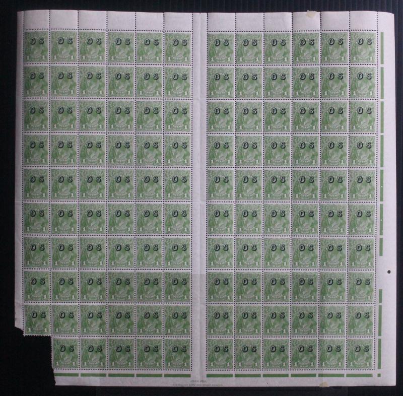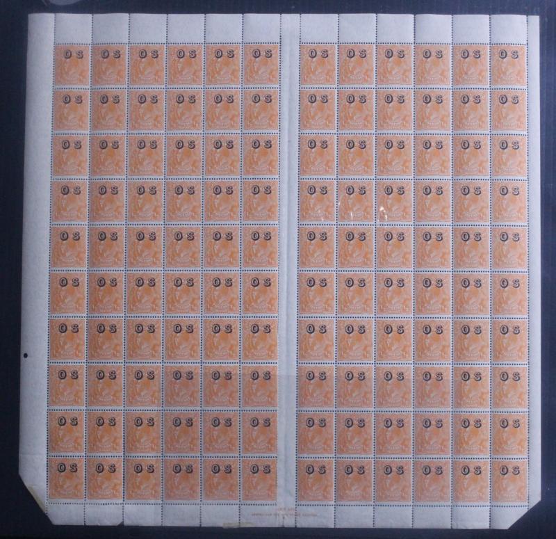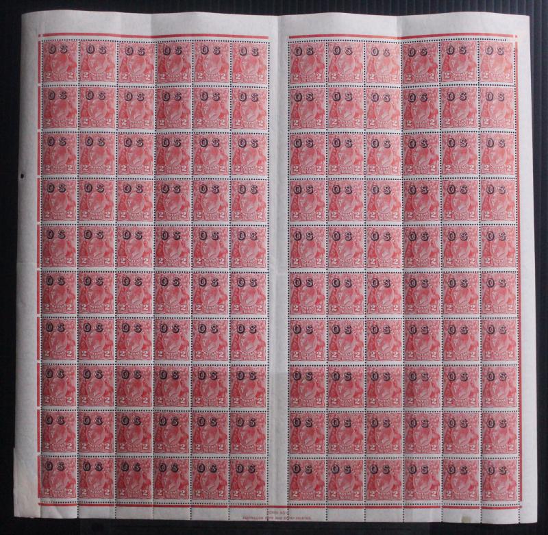 2d scarlet ACSC 103(OS) (SG O130) complete sheet of 120 with listed varieties & John Ash Imprint, some minor perf