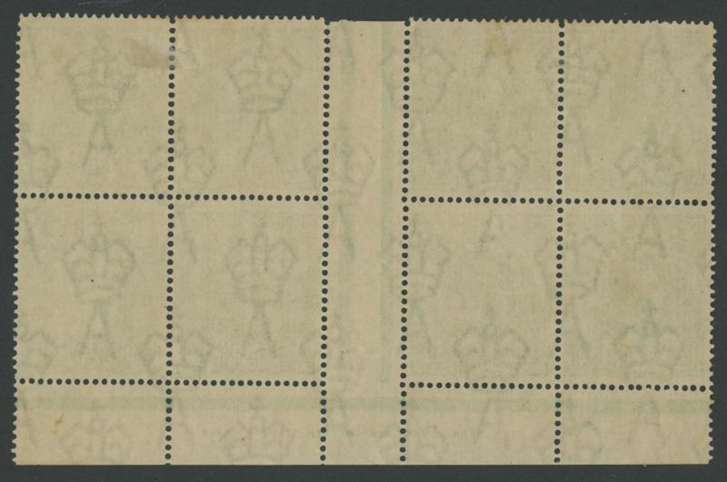 ½d dull green SG 48 Electro 6 TS Harrison 'COMMONWEALTH' One-Line Imprint block of 4 with Retouched Crack through King's Ear [Pos