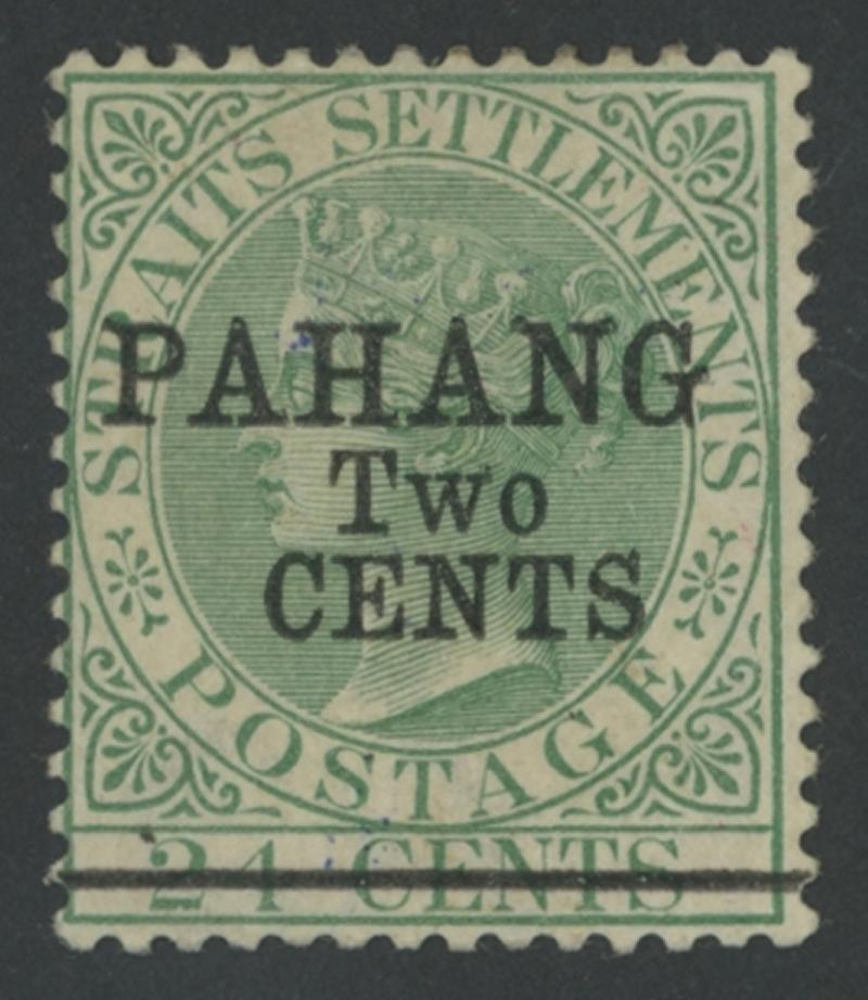 1891 Surcharges on Straits Settlements QV 24c green 'PAHANG/Two/CENTS' Type 5 overprint SG 7, very fine virtually complete