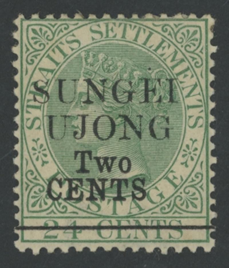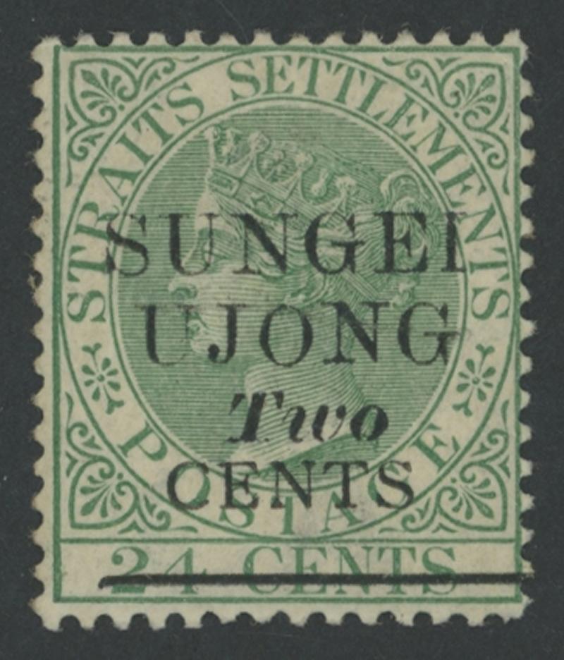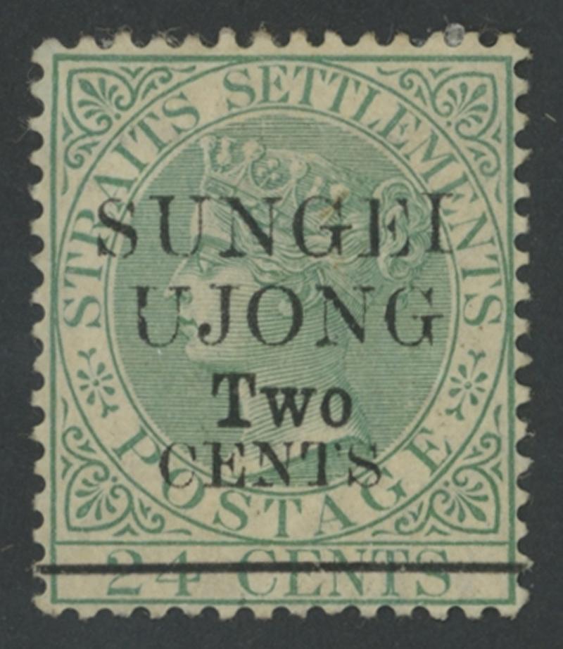 1891 Surcharges on Straits Settlements QV 24c green 'SUNGEI/UJONG/Two/CENTS' Type 31 overprint SG 46, tropicalised gum, small