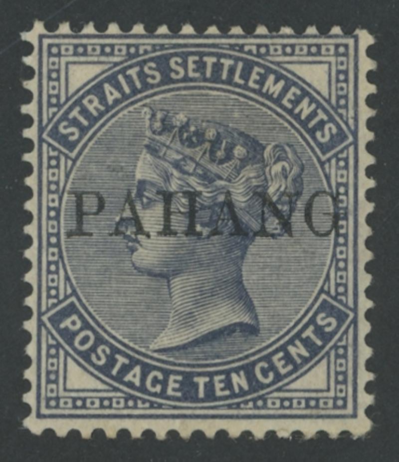 1889 Overprints on Straits Settlements QV 10c slate 'PAHANG' Type 1 SG 3, fresh colour, large-part gum with a small hinge