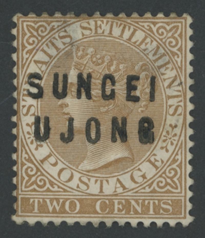 1881-84 Overprints on Straits Settlements QV 2c brown Crown CC Wmk 'SUNGEI/UJONG' Types 11+14 two-part overprint SG 10, fresh