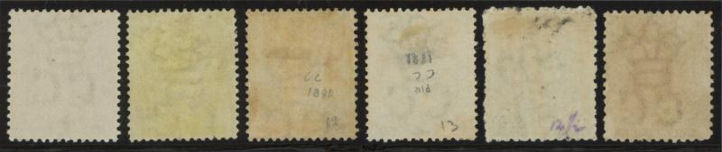 Orange-Yellow SG 12 (unused), Yellow SG 13 (unused), Perf 12½ Buff-Brown with Rough Perfs SG 14 (large-part original gum) and with Clean-Cut Perfs SG 15 (no gum), Cat £1600 for mint. (6) (Image1) (Image2)