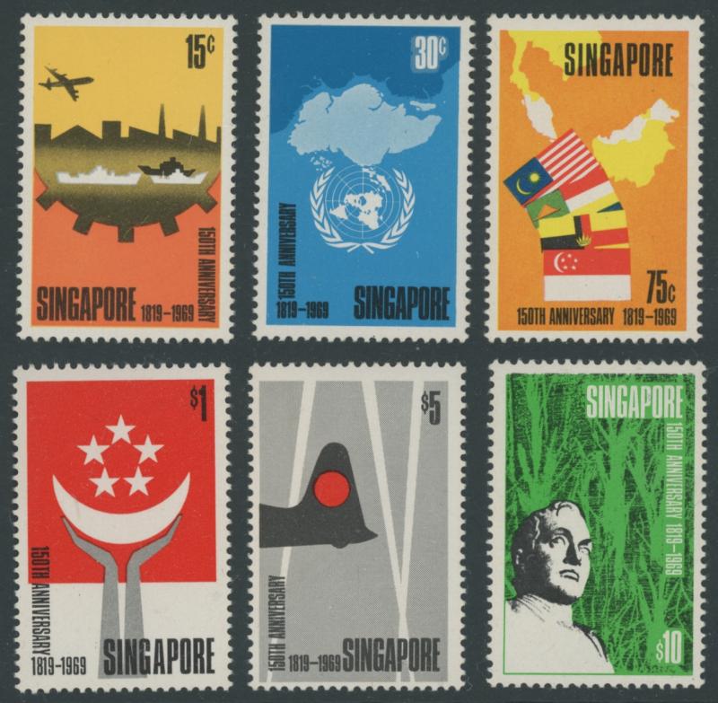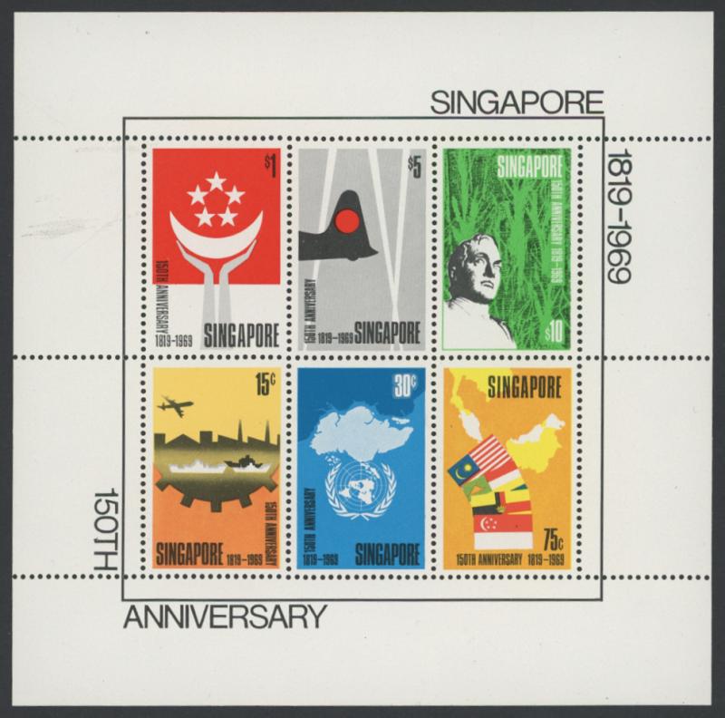 1969 150th Anniversary of Singapore 15c to $10 and the Miniature Sheet SG 128-132, unmounted, Cat £450.
