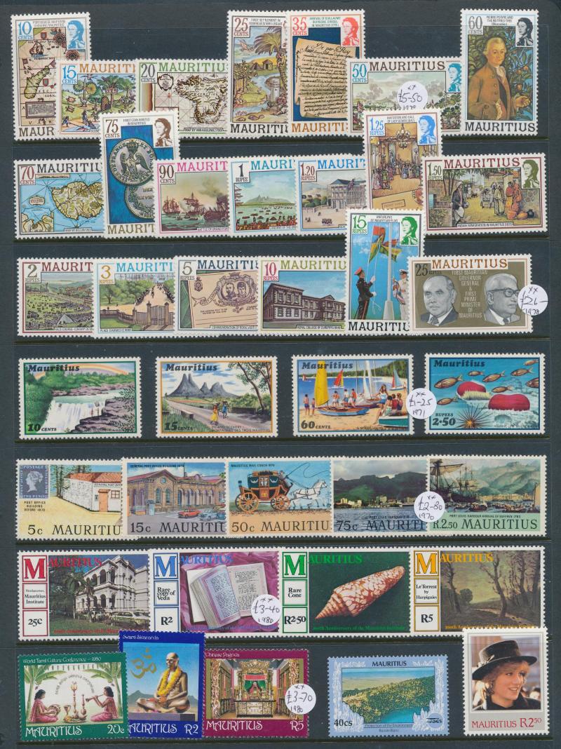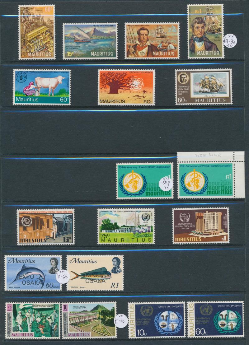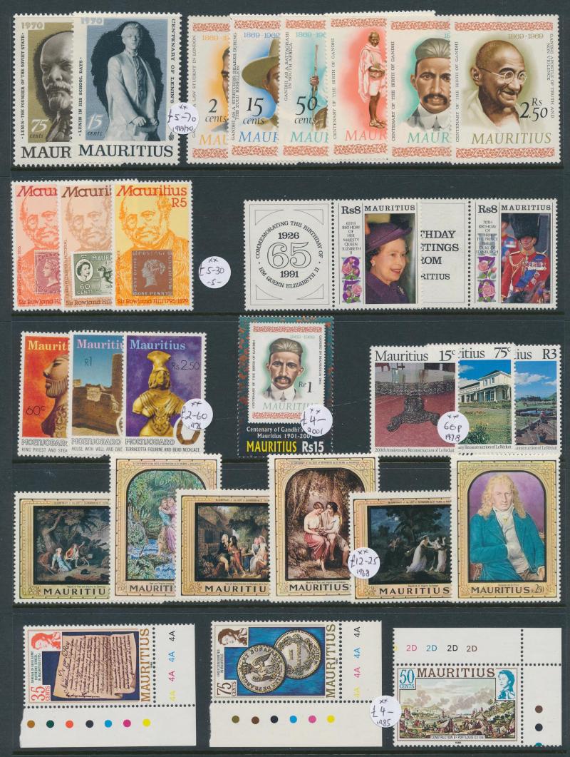1951 KGVI Pictorials set *, 1953-62 QEII Pictorials set ** & used plus $4.80 Type I & Type II blocks of 4 **, 1965 Plants set ** & CTO and Plate Number blocks of 4 **, 1968 Surcharges set Plate Number blocks of 4 **, 1969-70 Plants & Surcharges