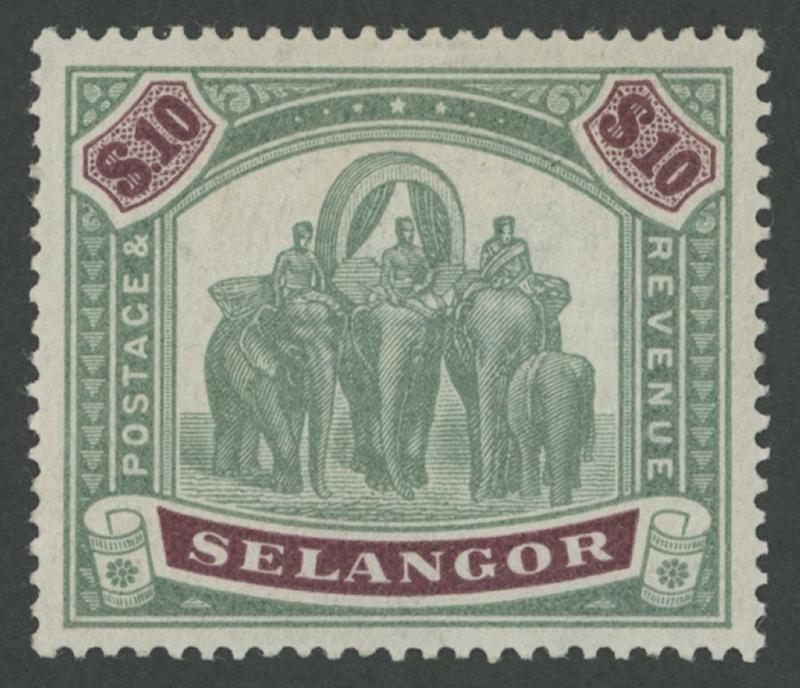 1895-99 Elephants Crown CC Watermark $10 green & purple SG 65, well-centred, small hinge remainder, Cat £950. (Image1) (Image2)