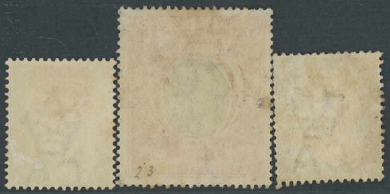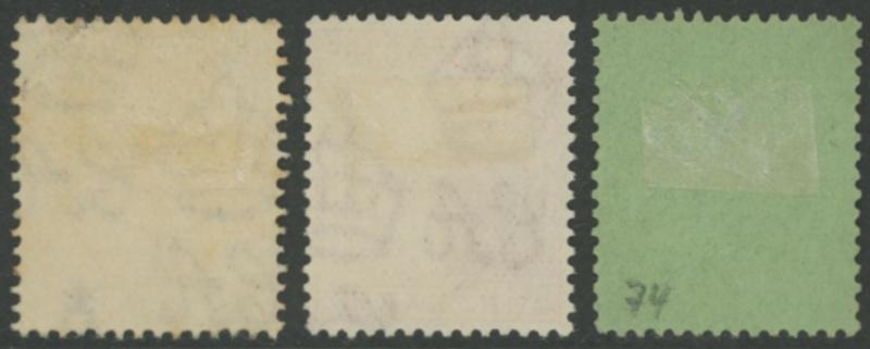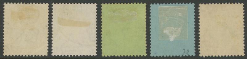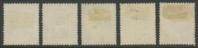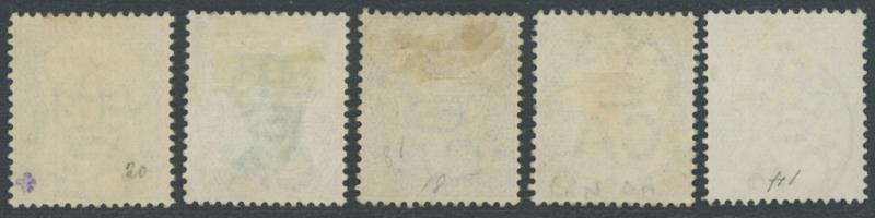 Definitives Wmk Crown CA 2½d ultramarine x5 (3 used), 1903 KEVII Badge of the Colony Wmk Crown CA 2/6d green & black and 5/- black & scarlet, 1904-08 Wmk Multiple Crown CA Colony Badge 2/6d green & black and 5/- black & red, 1908-14 Colony Badge