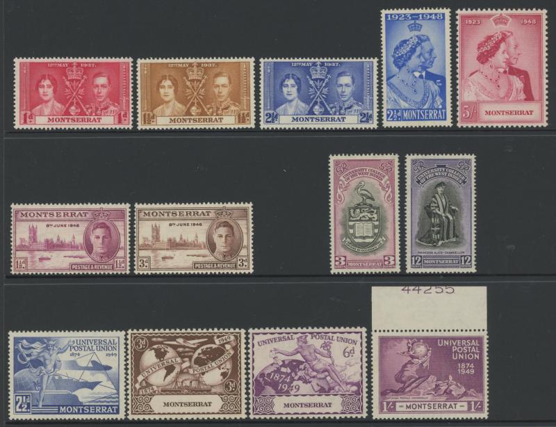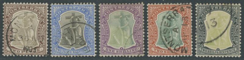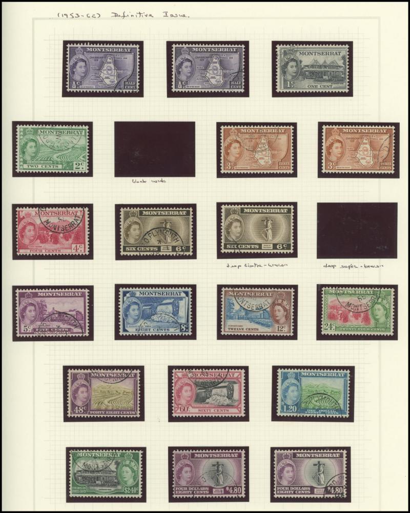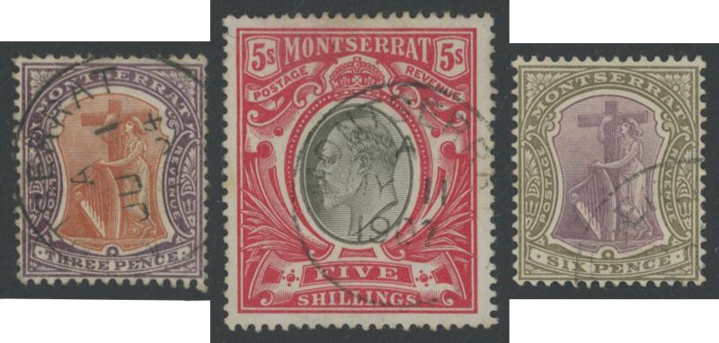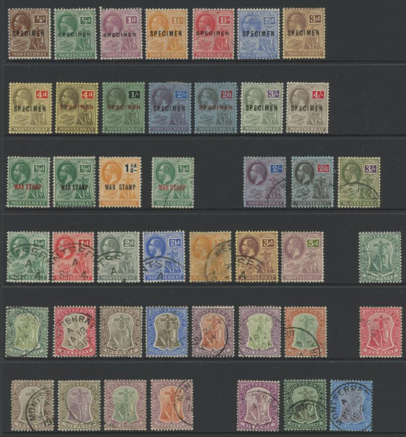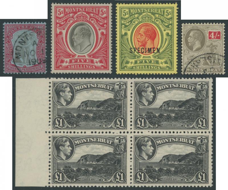 two used examples, 6d x3 (one used), 1880 De La Rue Definitives 2½d red-brown used, 4d blue used x2, 1883 Wmk Crown CA Perf 12 overprinted 'MONTSERRAT' 1d red, 1884-85 Wmk Crown CA Perf 14 1d red overprinted 'MONTSERRAT' x5, 1884-85 De La Rue