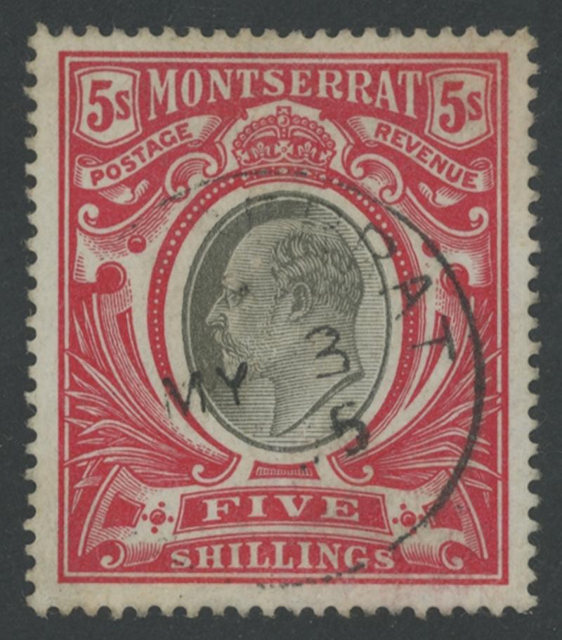 1904 KEVII Keyplate Crown CC Watermark 5/- black & scarlet SG 23, fresh colours, light cds cancel, Cat £250. Ex Jerry Blair. (Image1) (Image2)
