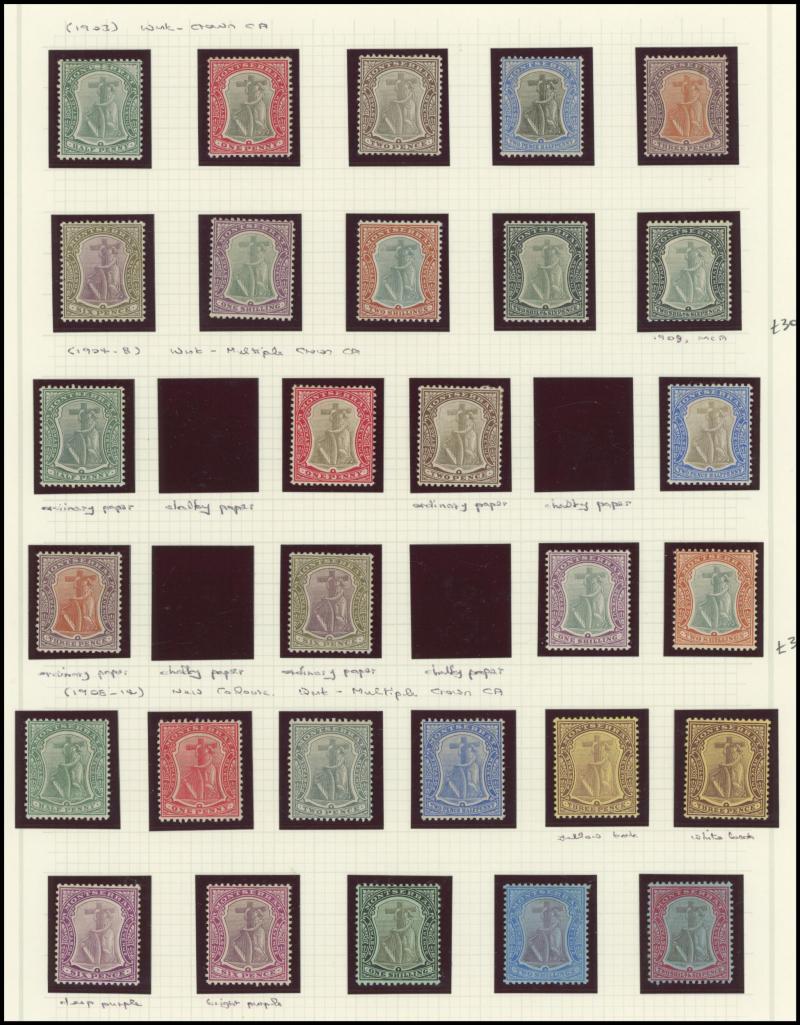 1903-04 KEVII Crown CA Wmk set * & used, 1904-14 KEVII & Pictorials Multiple Crown CA Wmk set * & used plus extra shades including 5/- used, 1914-21 KGV & Pictorials Multiple Crown CA Wmk set * & used plus extra shades & papers including 3d on