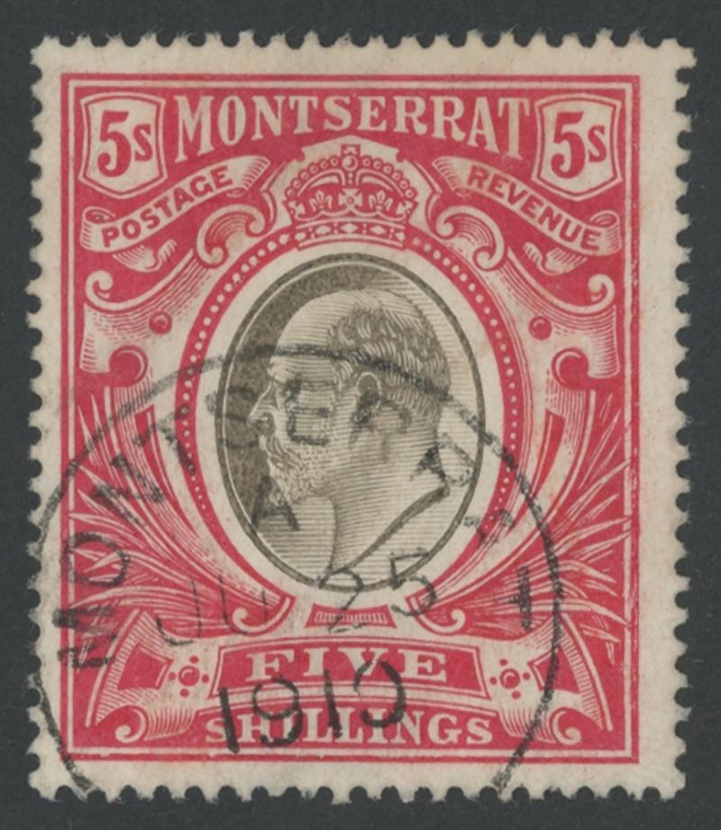 1907 KEVII Keyplate Multiple Crown CA Watermark 5/- black & red SG 33, fresh colours, light virtually complete 1910 cds cancel, Cat