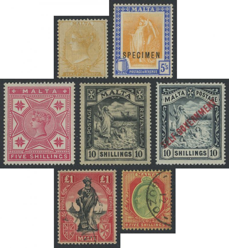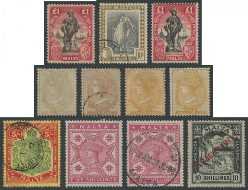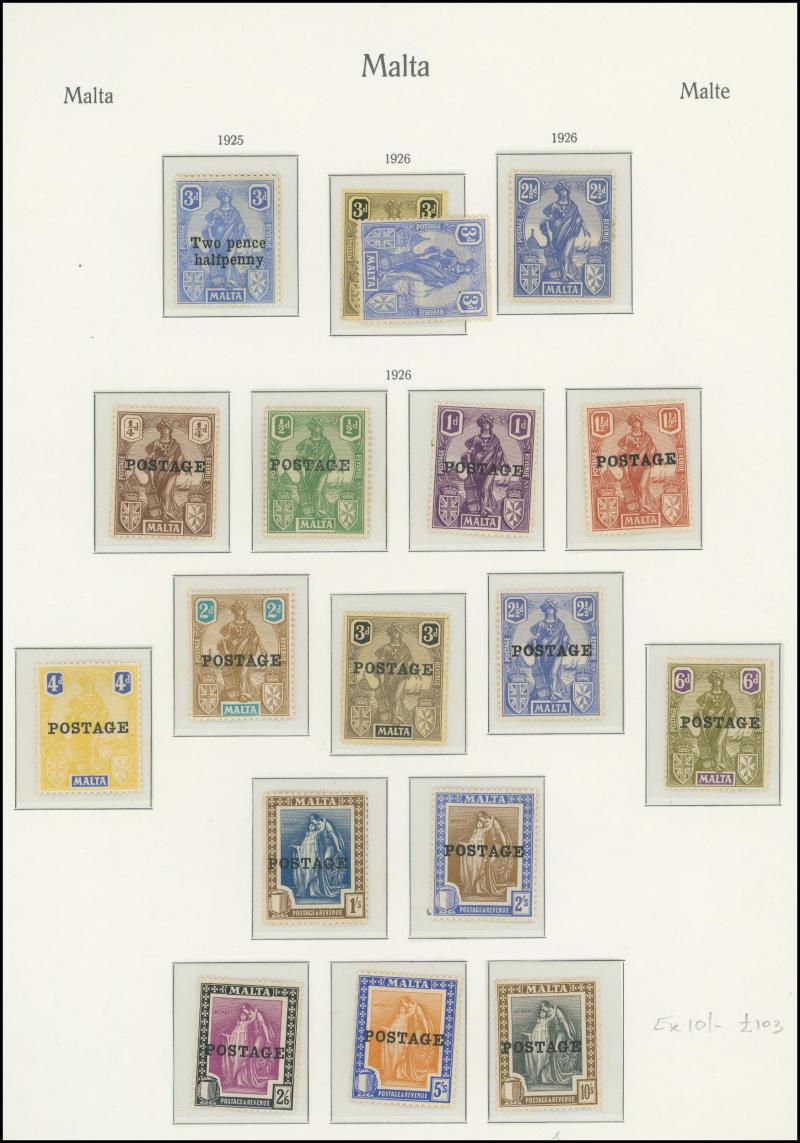 ** and 1965 History of Malta set **, 1925 Provisional Postage Dues set plus 1d on cover with KGV very pale green ½d war tax, and Permanent Postage Due set, condition generally fine to very fine, Cat £9500 approximately.