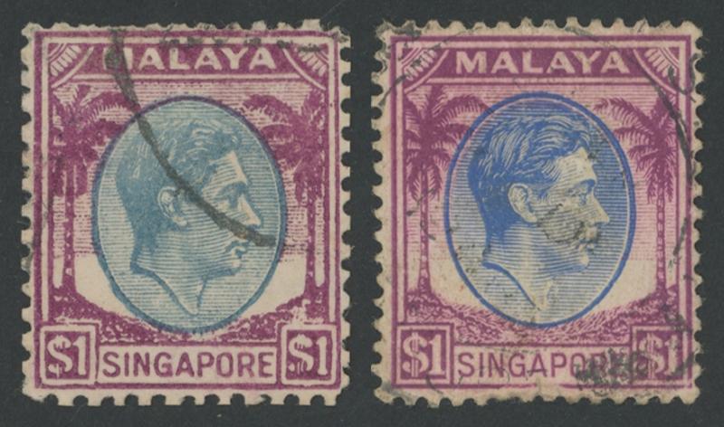 characteristic centring & rough perfs due to the crude separation method employed, tiny central thin, postally used with indistinct partial Singapore marchine cancel. With a genuine used stamp for comparison. Ex Dr William Wells. (2) (Image1) (Image2)
