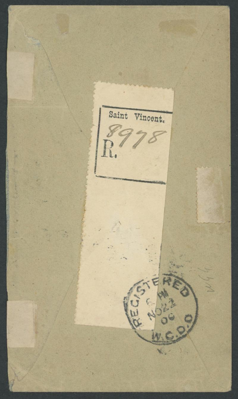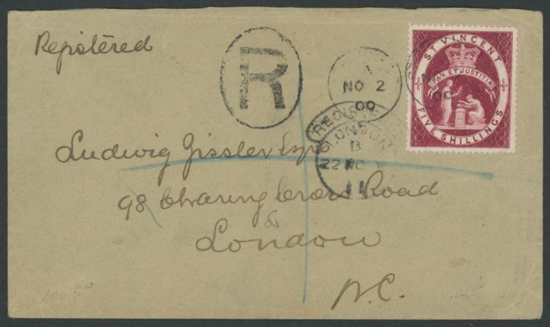 philatelic cover by by faint cds of 'NO2/00' with another strike and 'R'-in-oval handstamp alongside, huge black/white R label tied to the reverse by London arrival cds of 'NO22/00', hiided 'REGISTERED/LONDON/22NO00/ 11 ' datestamp on the face, the