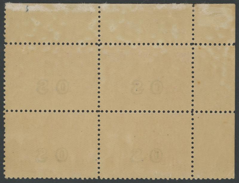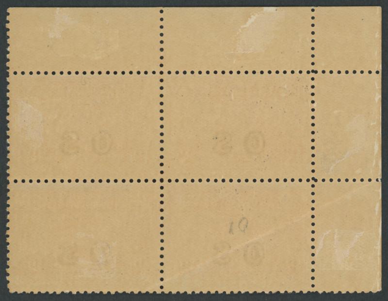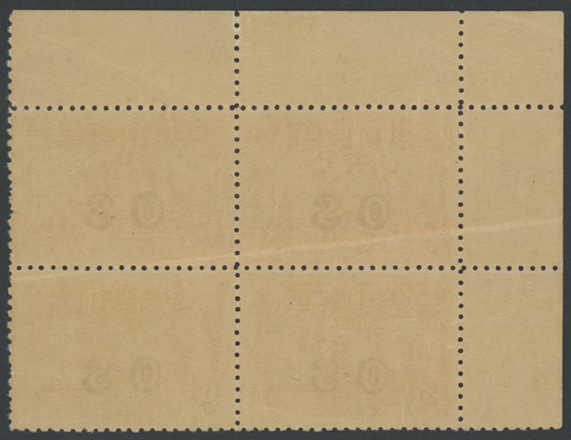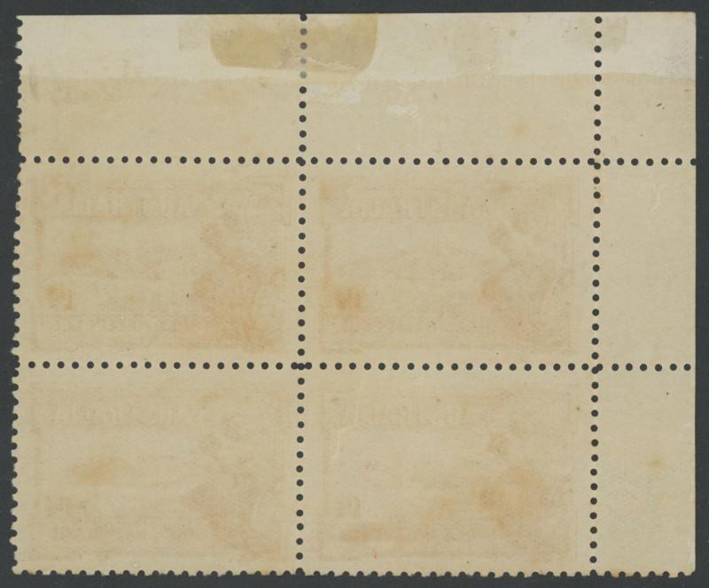 crease affects lower-left unit, the left-hand units are unmounted, Cat $3750+ for mounted (£340+ for singles). Chris Ceremuga Certificate (2006) states "Extremely rare". Ex 'Tillie Mitchell': sold for $708 (Sale 242 Lot 364). (Image1) (Image2)