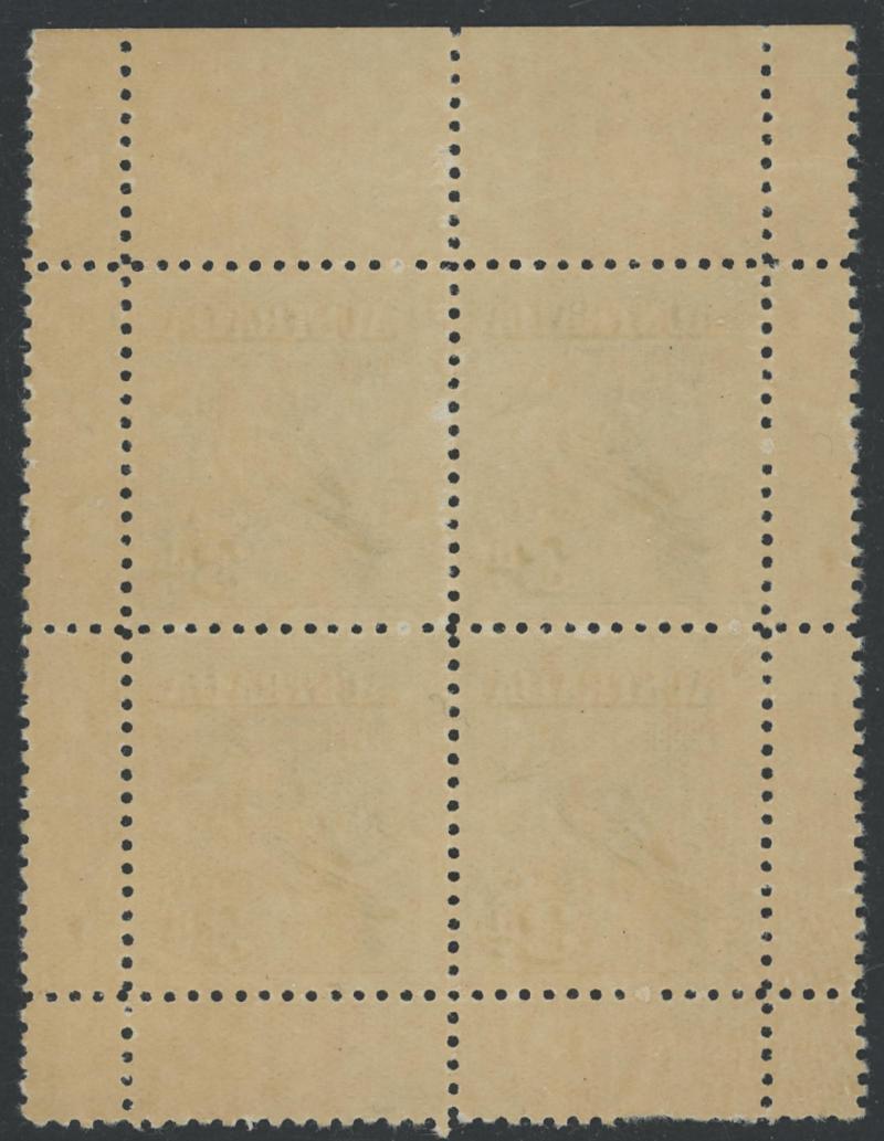 gum-crease affects the upper units, unmounted, Cat $3750+ for mounted (£340+ for singles). Chris Ceremuga Certificate (2006) states "Extremely rare". Ex 'Tillie Mitchell': sold for $990 (Sale 242 Lot 362). (Image1) (Image2)
