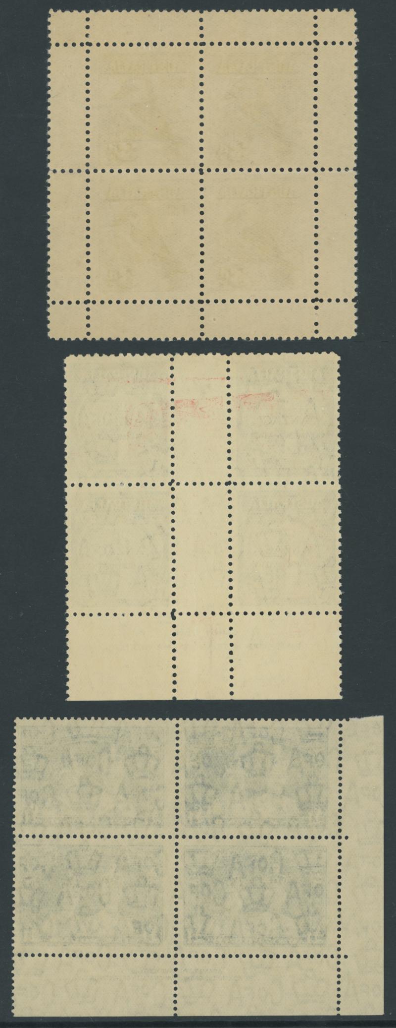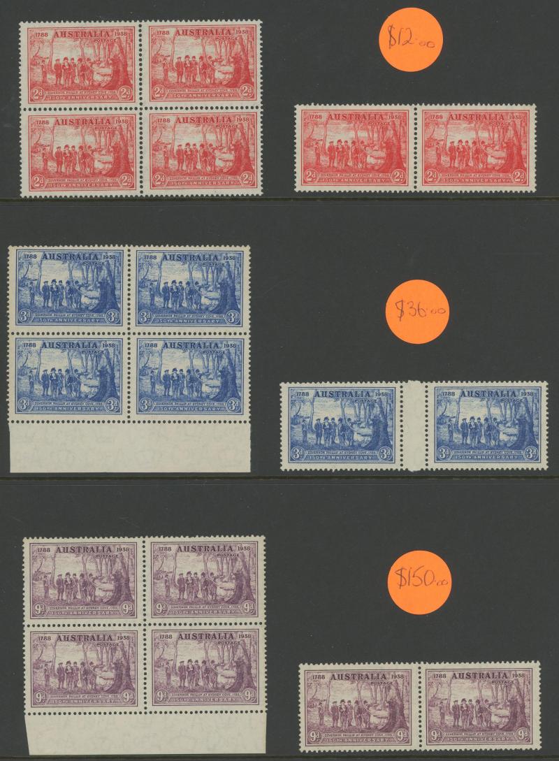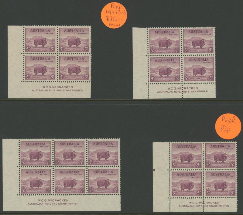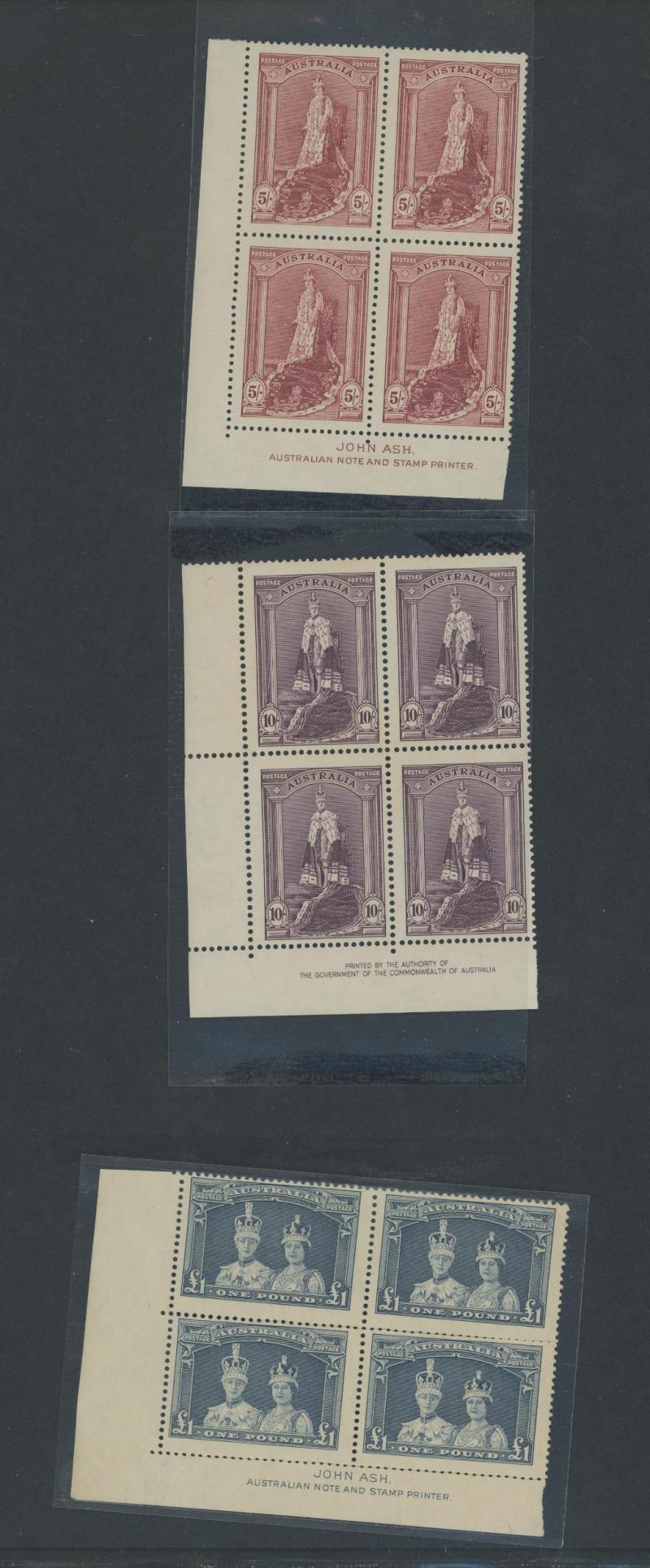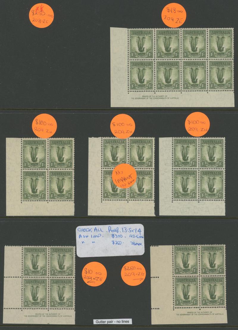 plus Thick Paper imprint pairs, AIF blocks of 4, Surcharges '3½d' on 3d & '5½d' on 5d imprint blocks of 16 or 10, Arms 10/- imprint & No Imprint plus 'SPECIMEN' set and £2 used block of 4, Aborigine 2/6d imprint x4 and No Imprint block of 8 x2, Food