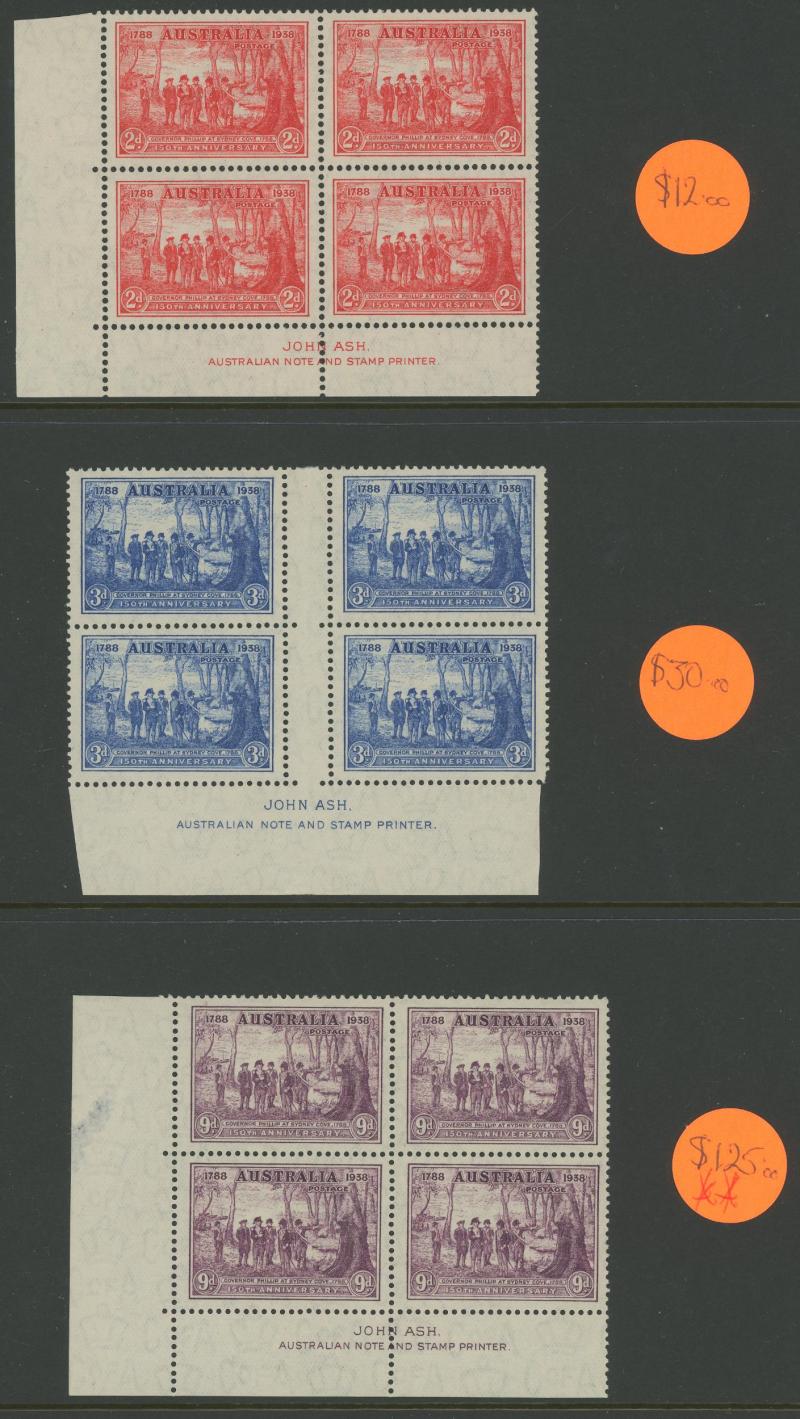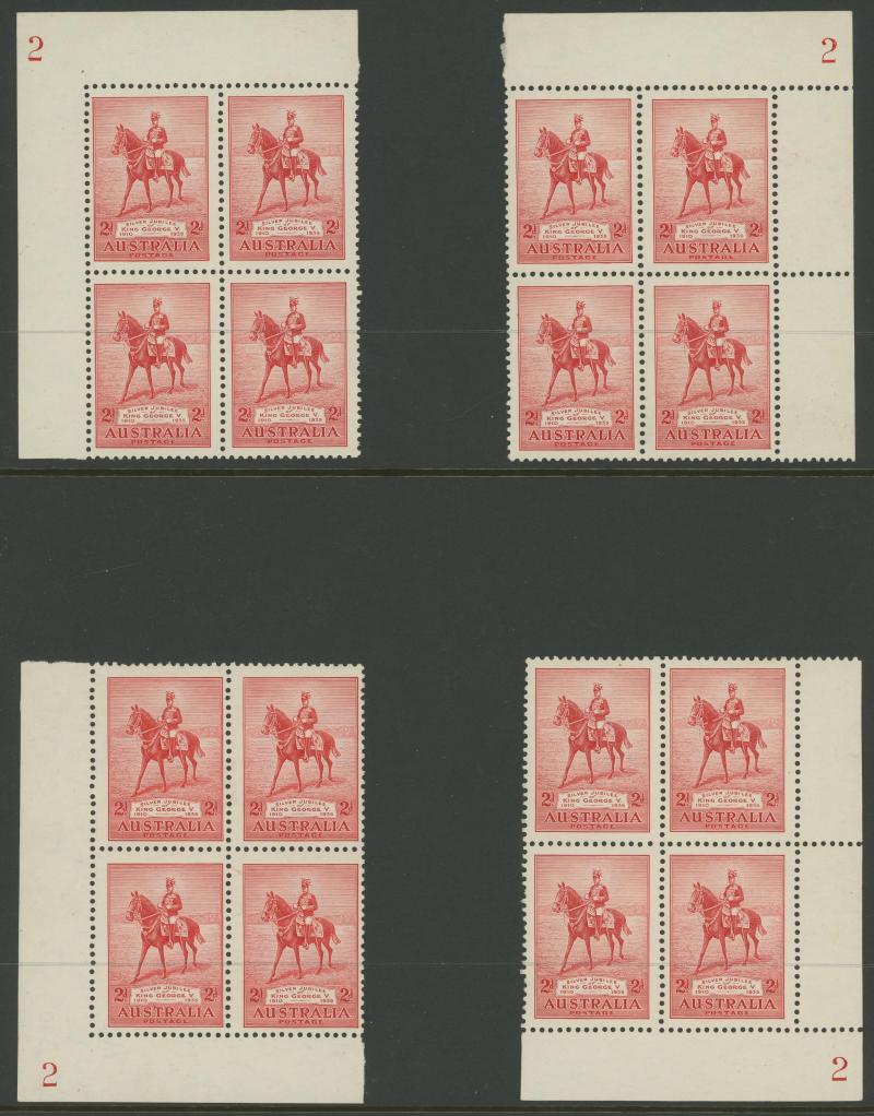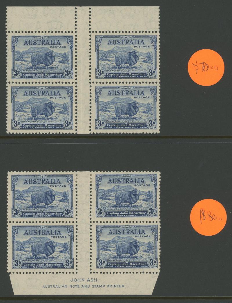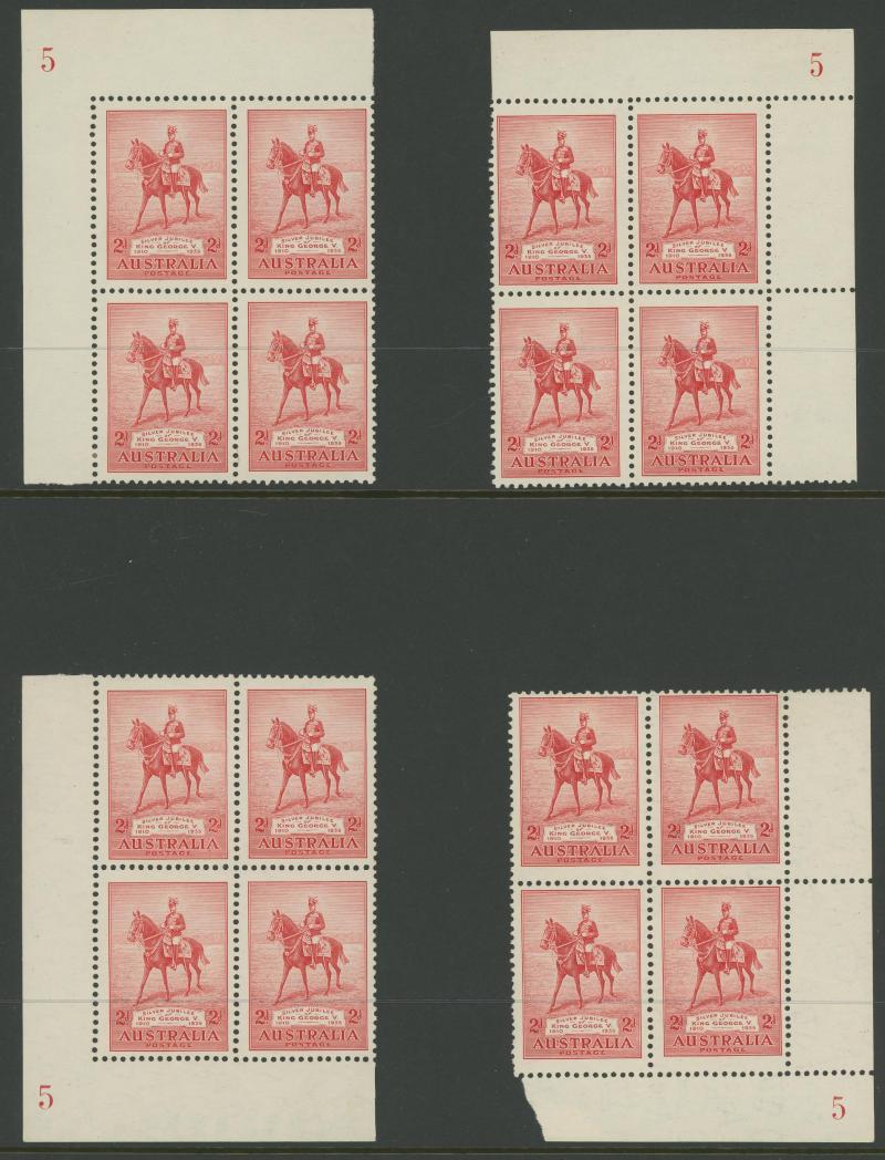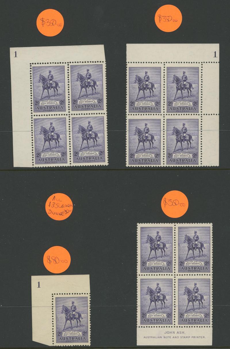 and 3d imprints, Large Kookaburra imprint x2, MacArthur imprints including 2d Dark Hills, Jubilee Plates 2d '1' to '6' all positions and 3d '1' three positions noted "not checked for varieties", Sturt Centenary imprints, NSW Sesquicentenary imprints,