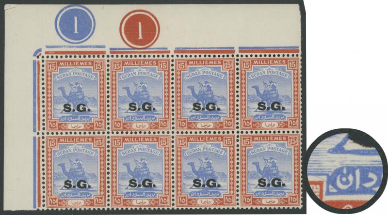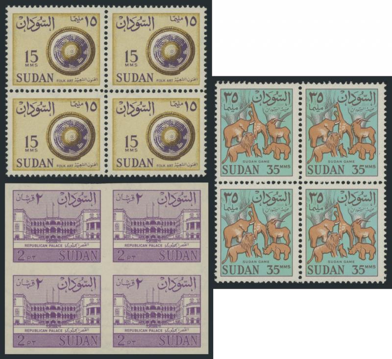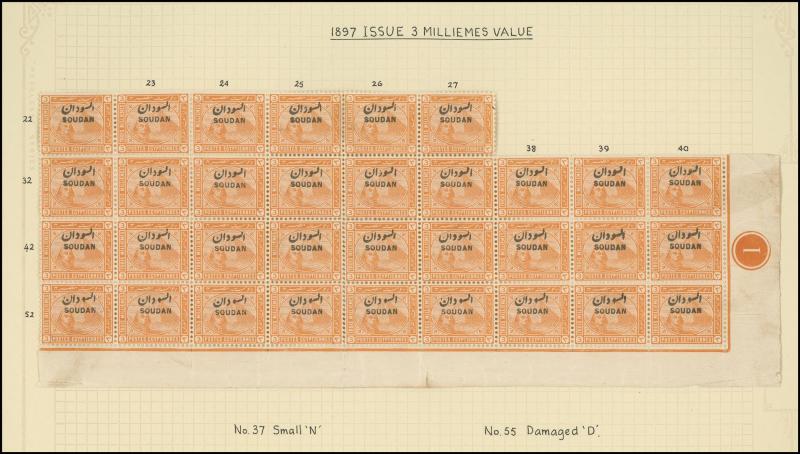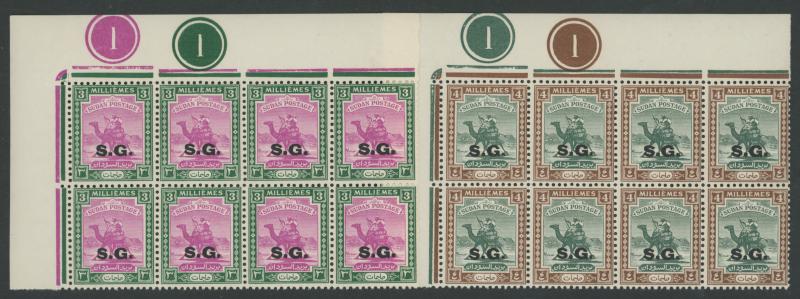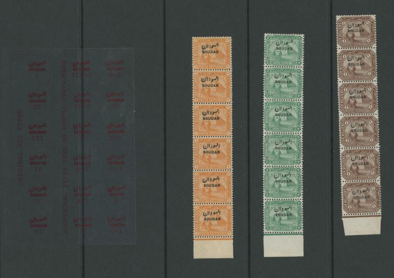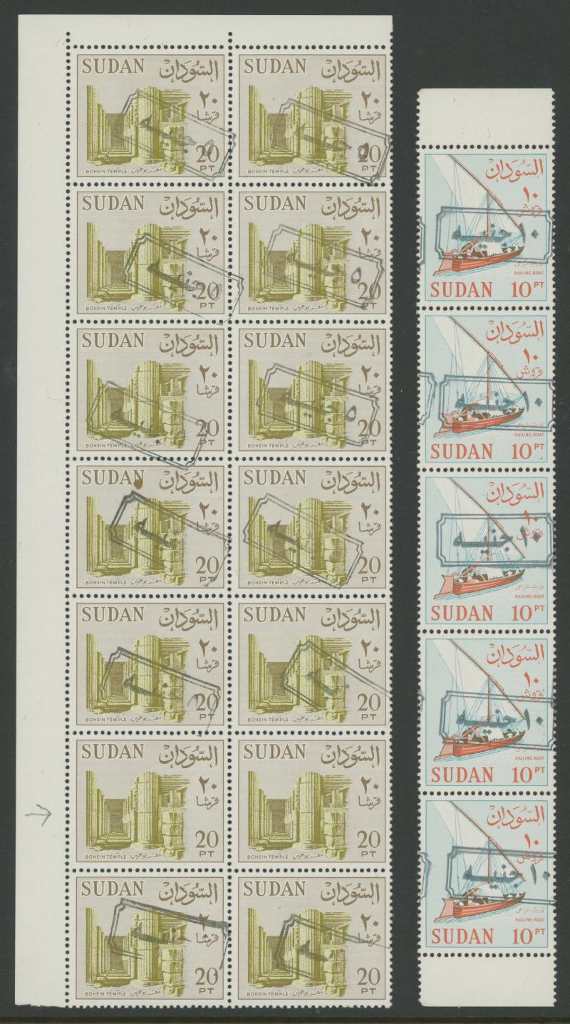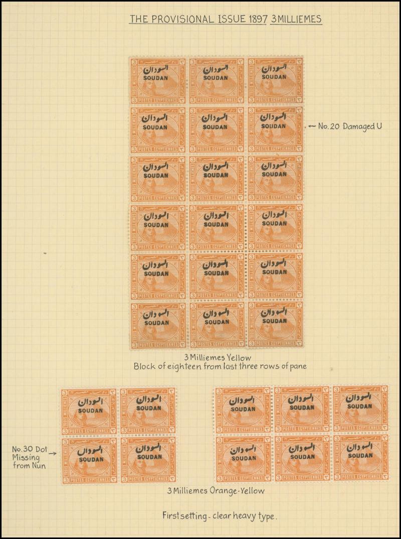 HALFA' cds, 1m with the Overprint Misplaced block of 4, 1m blocks of 4 with superb 'KORTI' cds and of 12 (6x2) with superb 'BERBER' cancel without dates, 1m with the Overprint Inverted, 3m blocks of 18 & 33 and 5m block of 38 each with a few