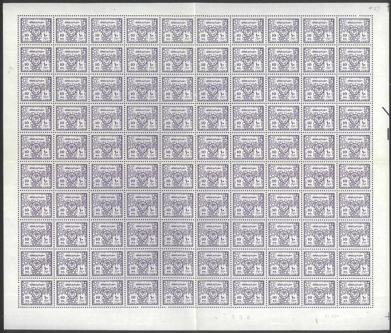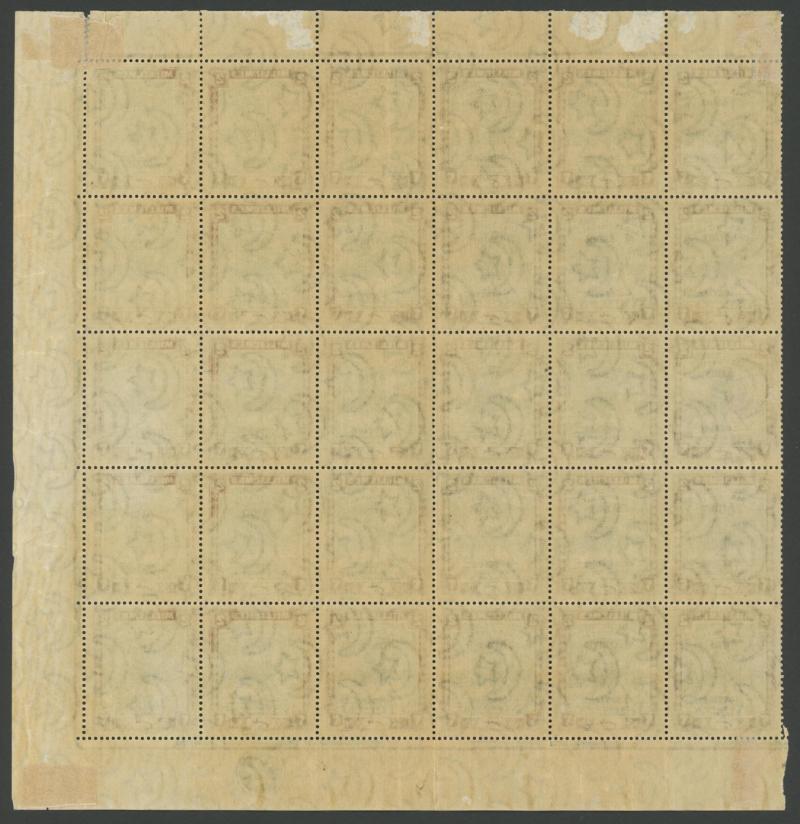 larger-format 10pi violet sheets of 100 (10x10) with marginal inscriptions and Amusements Tax 5pi ochre & 5pi canary-yellow sheets of 50 (10x5), unmounted & generally superb.