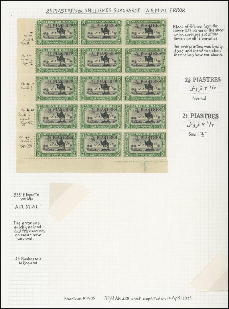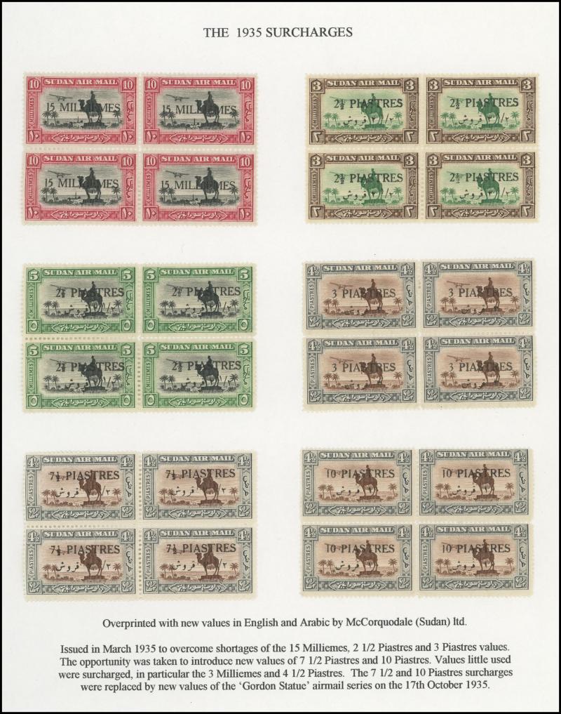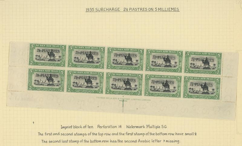 panes each with Extended Foot to 'R' of 'AIR' and also in used strip of 3 (not priced used by Gibbons), 1931-37 Gordon Statue set including all listed perfs mint singles & blocks of 4 and used, 1935 Surcharges mint & used plus Imprint Strips of 3,
