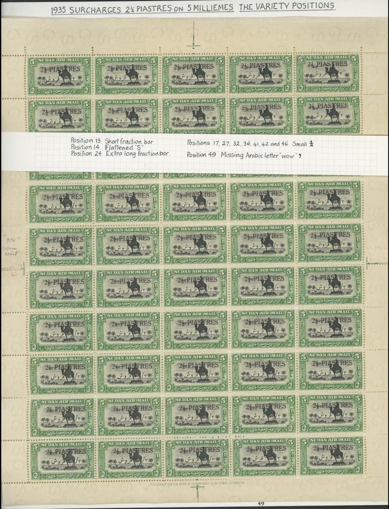 several varieties including 2½pi Missing Second Arabic Letter SG 70a in used pair, in an imprint block of 10, and in a complete sheet of 50 also with minor varieties on ten other units, 1938 Surcharges mint & used, Cat £1600 approximately.