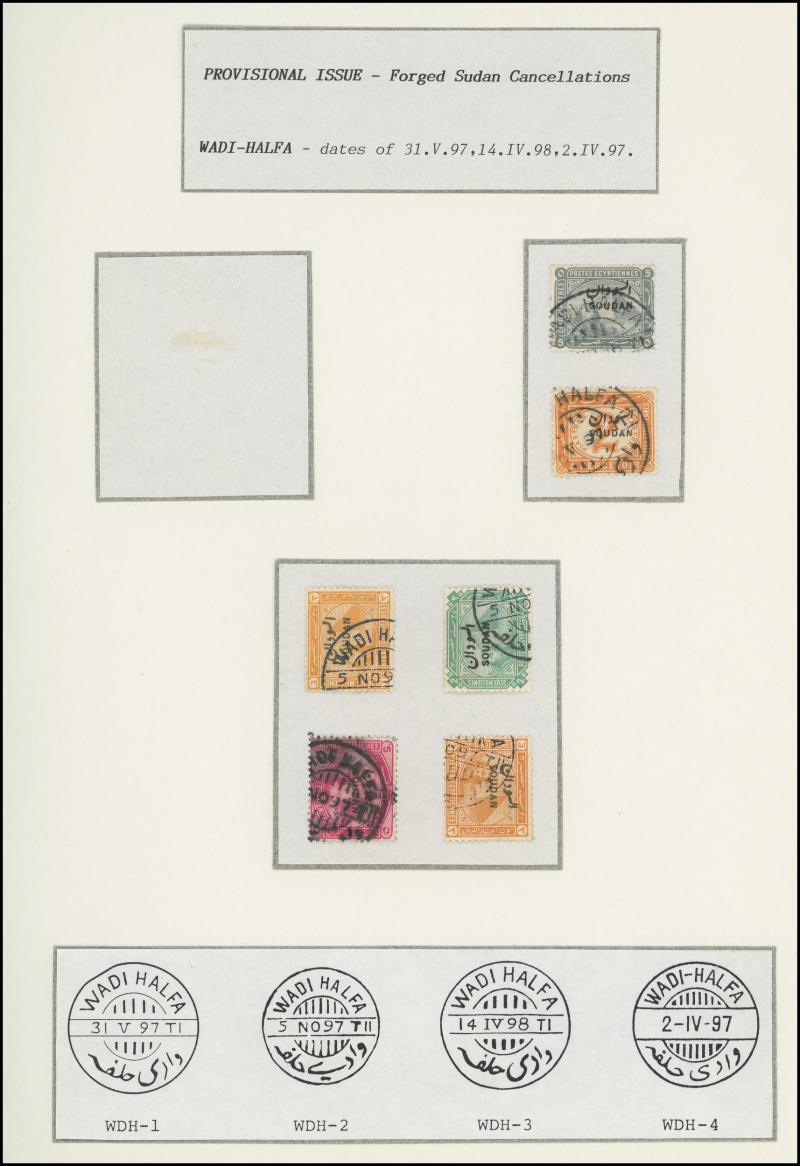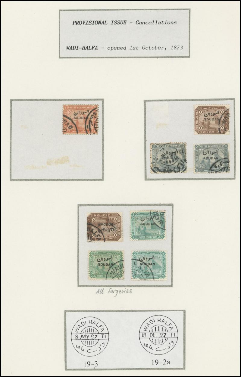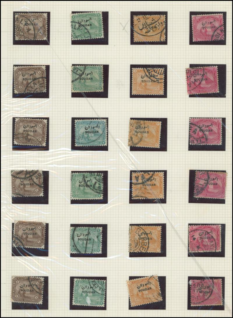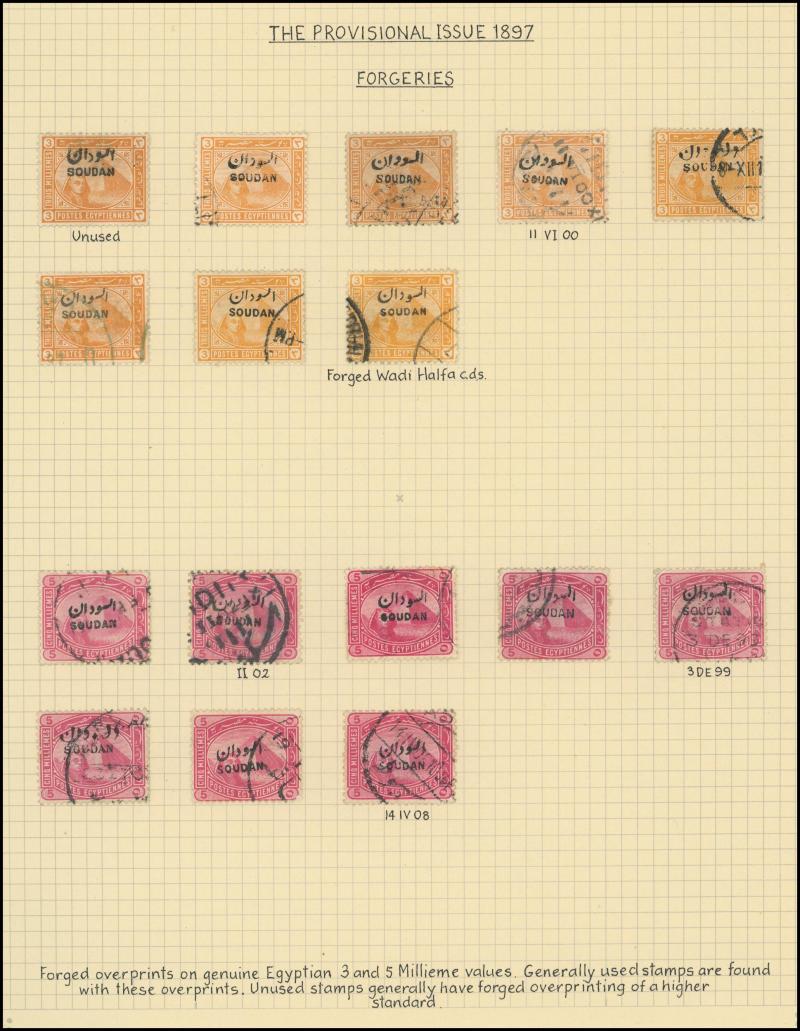 largely fine strikes of double-ring 'BERBER' cds with No Dates, etc, forged cancels including on 10pi block of 4, forged overprints including 5pi x6 & 10pi x4, 1900 Punctured 'OS' 5m used x5, two pages with partial telegraph cancels, etc, generally