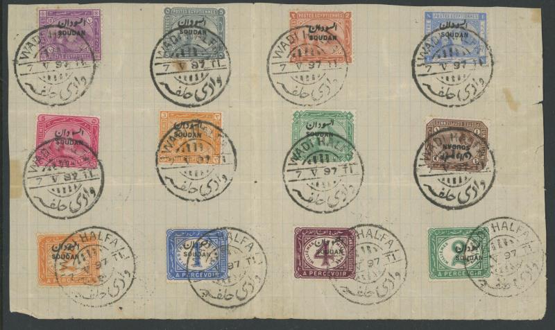 1897 'SOUDAN' Overprints on Egypt collection on partly-annotated pages including set to 10pi plus the Postage Dues all with 'WADI