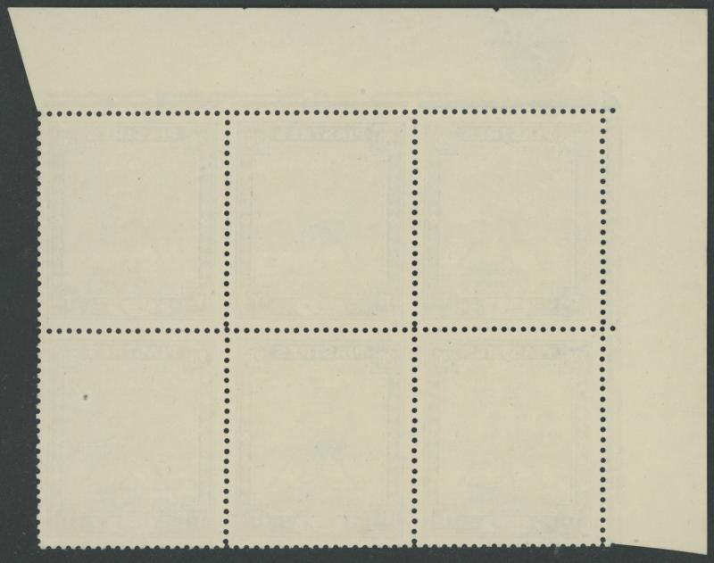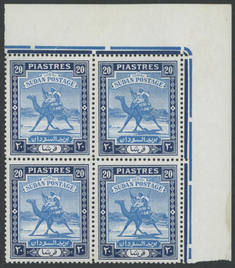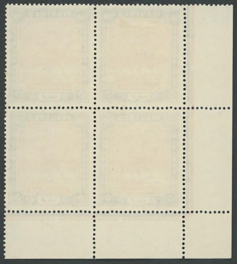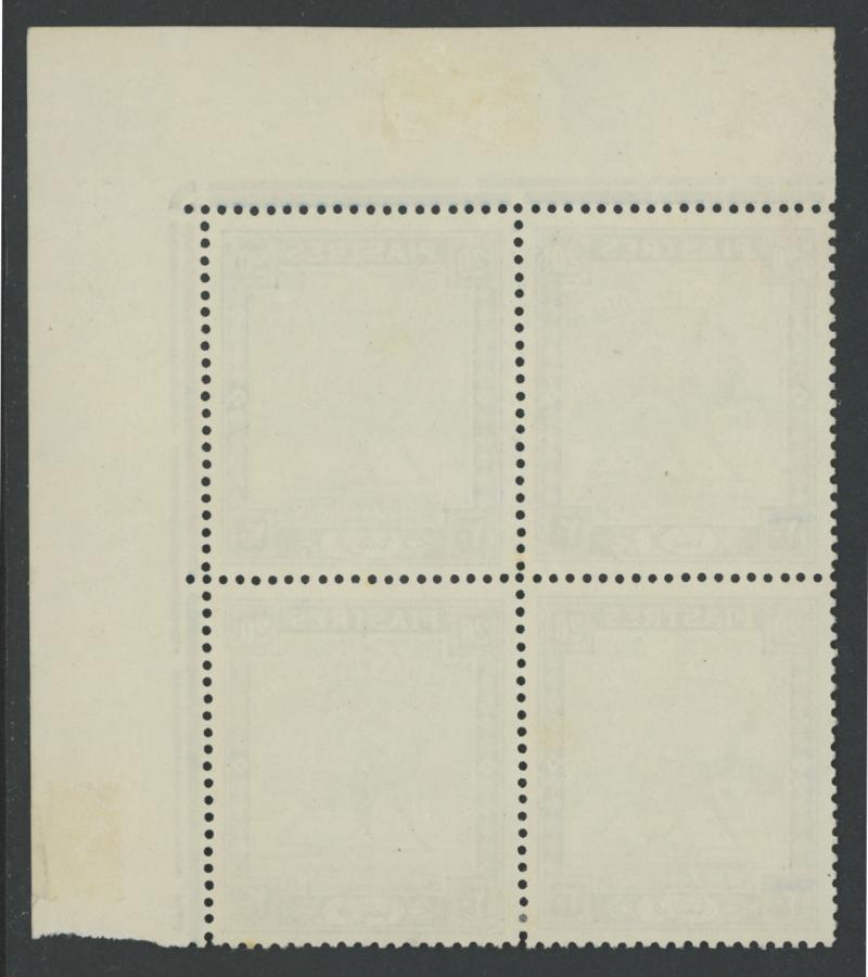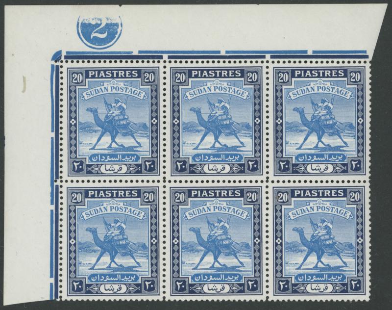 1948 Redrawn Arabic Inscriptions 20pi blue & indigo Perf 13 SG 110a upper-left corner block of 6 (3x2) with Plate Number '2' and