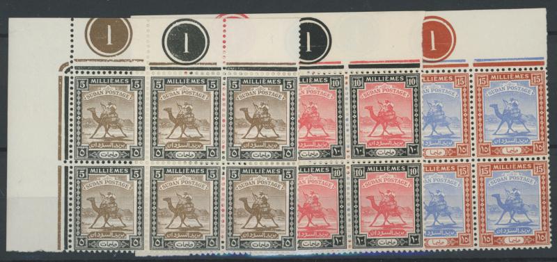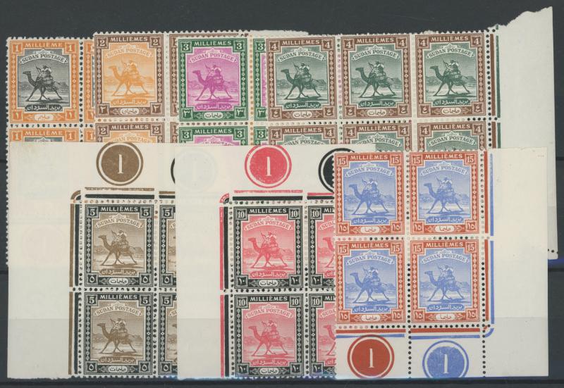 1948 Redrawn Arabic Inscriptions 1m to 50pi SG 96-111 corner blocks of 4, some with Plate Numbers, well-centred, the lower units