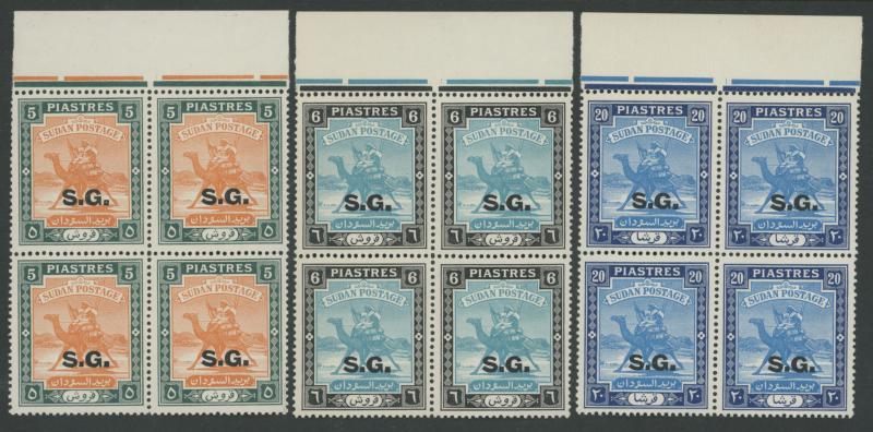 OFFICIAL STAMPS: 1948 'S.G.' Overprints 1m to 50pi SG O43-58 + 4pi SG O52a mostly marginal blocks of 4, many from the top of the