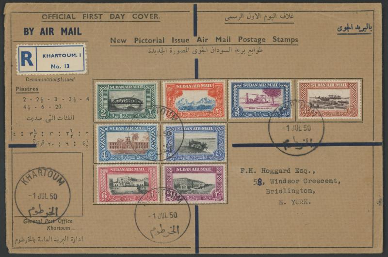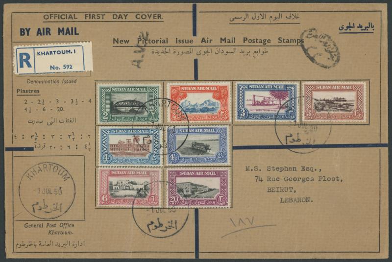 Khartoum Official First Day Covers, one of the Air covers to Lebanon with Egyptian censor & 'A.V.2' handstamp, stamps Cat £120.