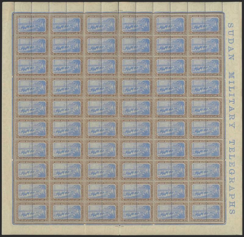 TELEGRAPH STAMPS: 1898-99 Camels & Telegraph Wires complete sheets of 120 (12x10 = 60 pairs) with 'SUDAN MILITARY TELEGRAPHS'