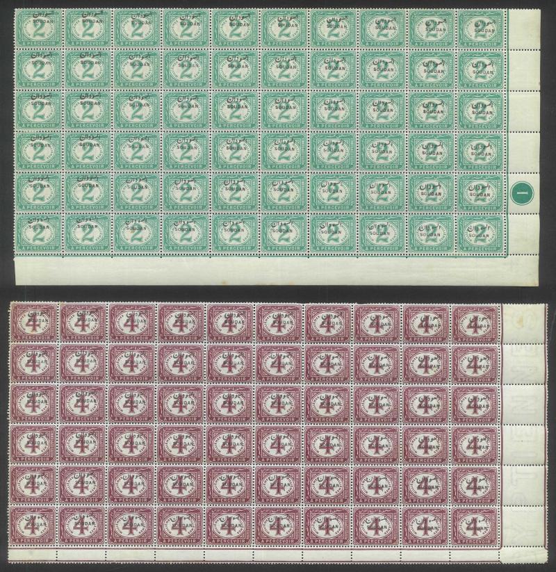 POSTAGE DUES: 1897 Overprints on Egypt 2m green & 4m claret SG D1 & 2 half-sheets of 60 (10x6) each comprising 10 vertical strips