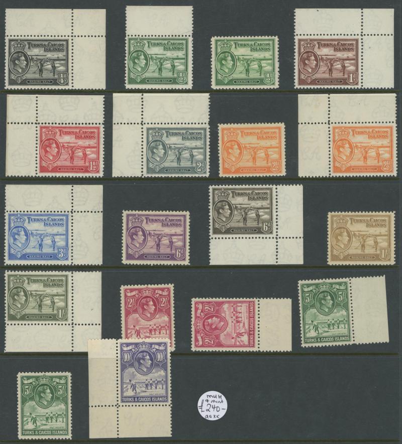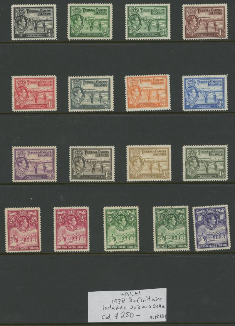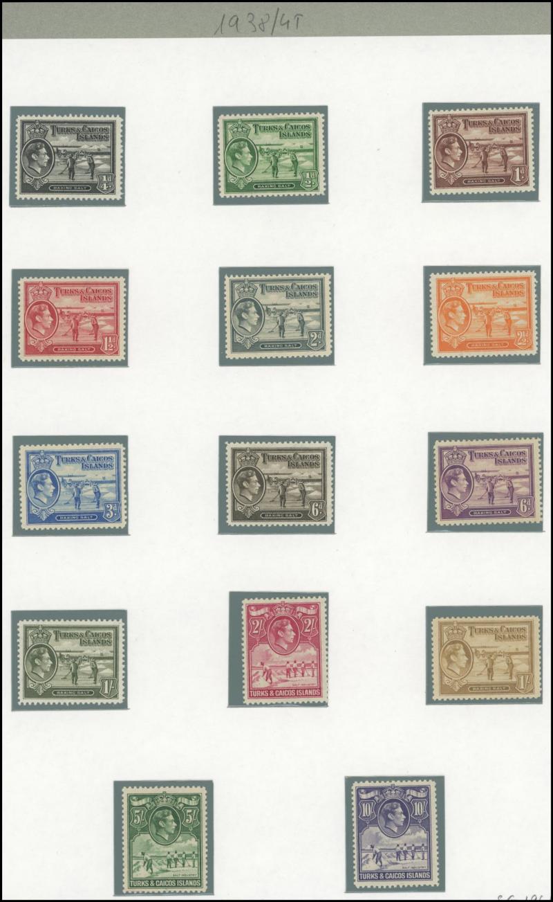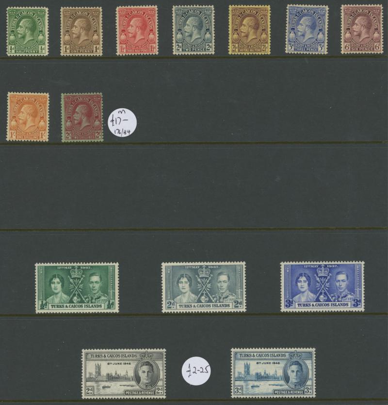 Mint collection with Turks basic QV range to 5d; and Turks & Caicos KGV 1922 to 3/-, KGVI 1938 Pictorials to 5/- & 10/- both **,